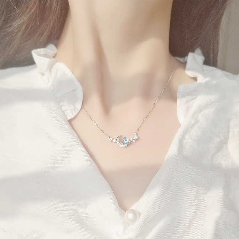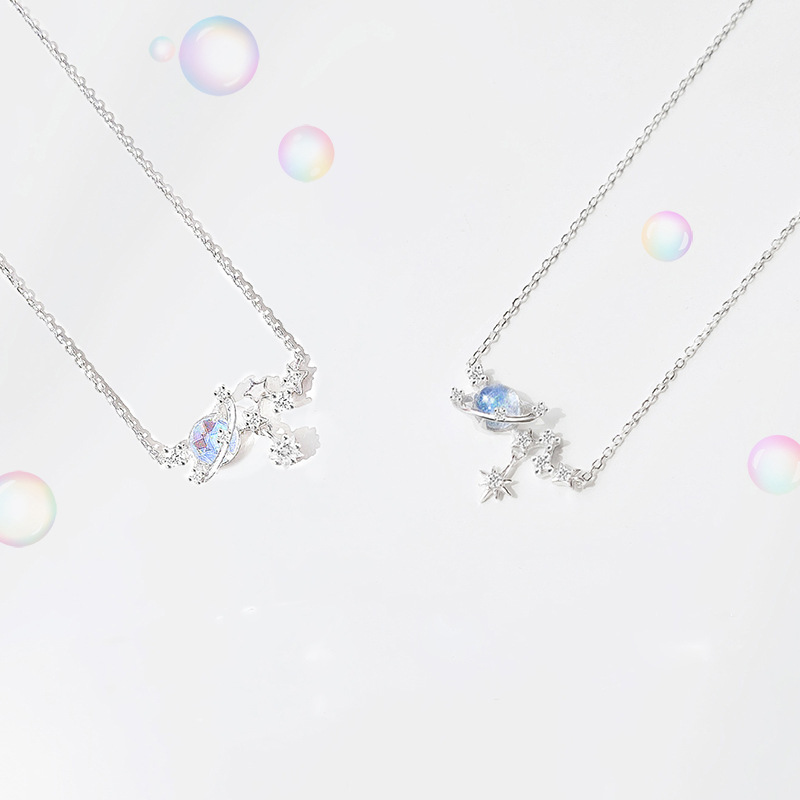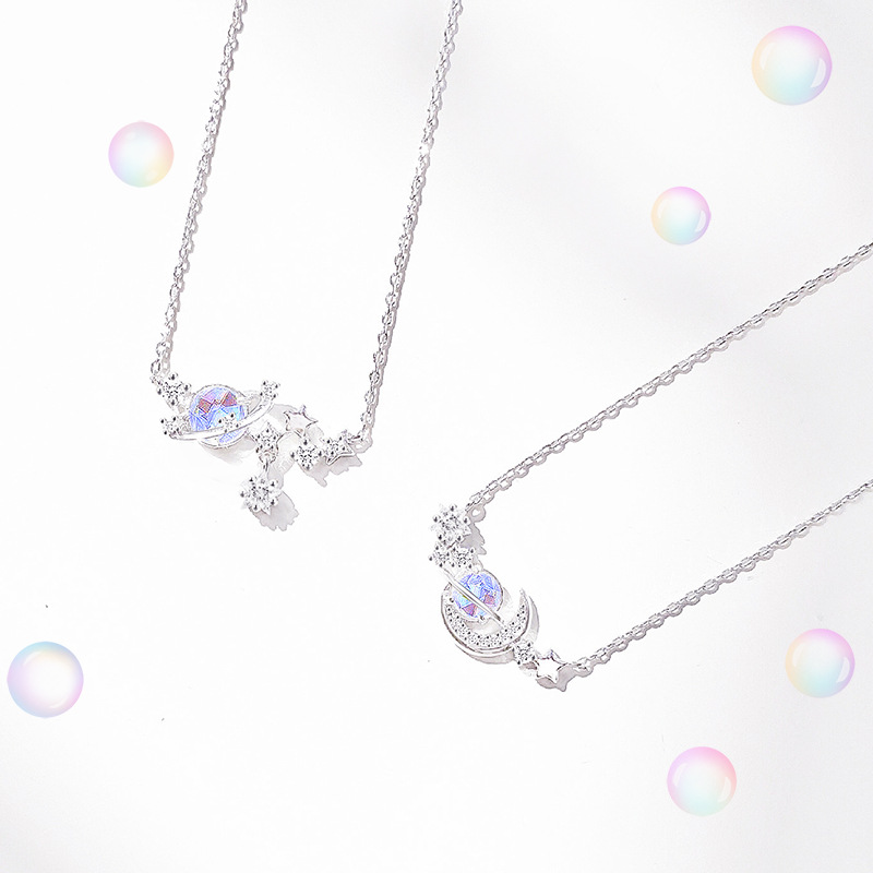Color: XL439 Star-Moon Necklace White Gold Star Style, XL439 Star-Moon Necklace White Gold Moon Style