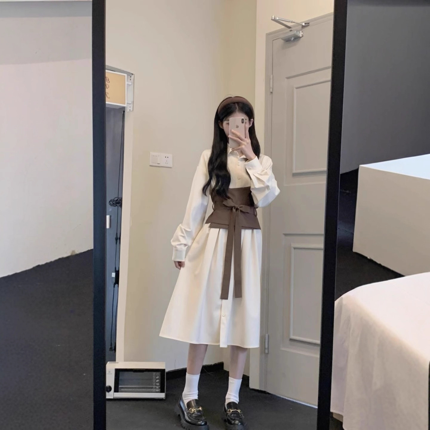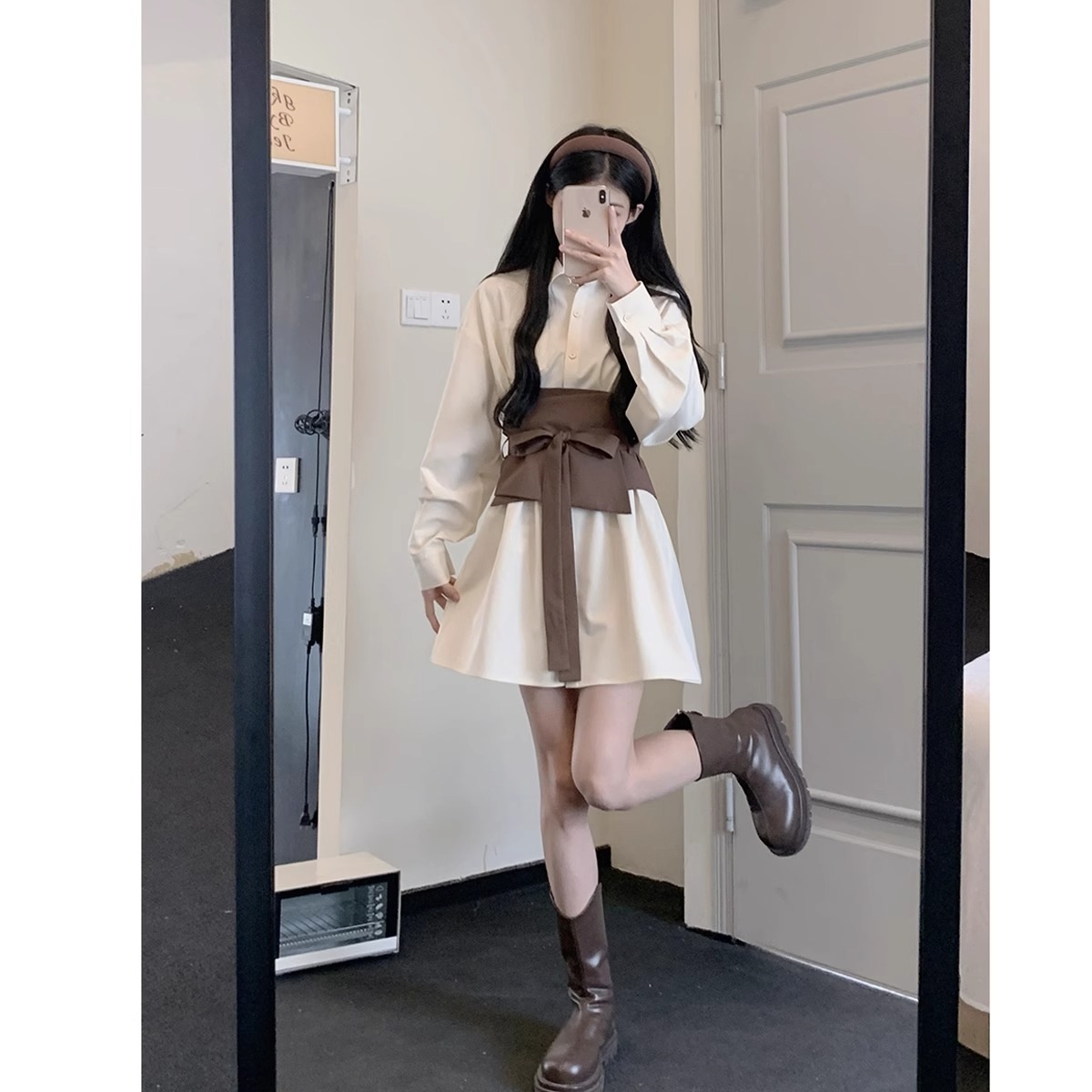 Long Sleeve Shirt Skirt Women's Temperament Slimming Dress
