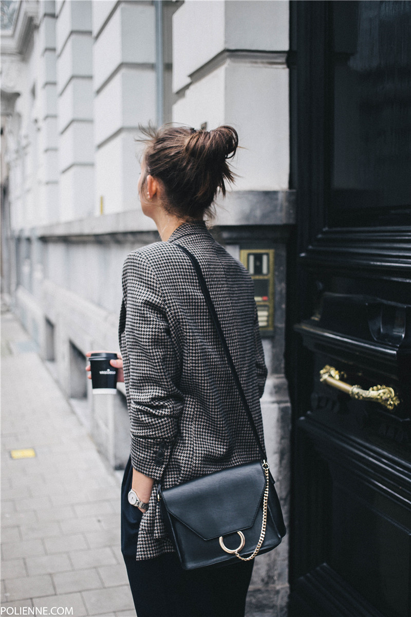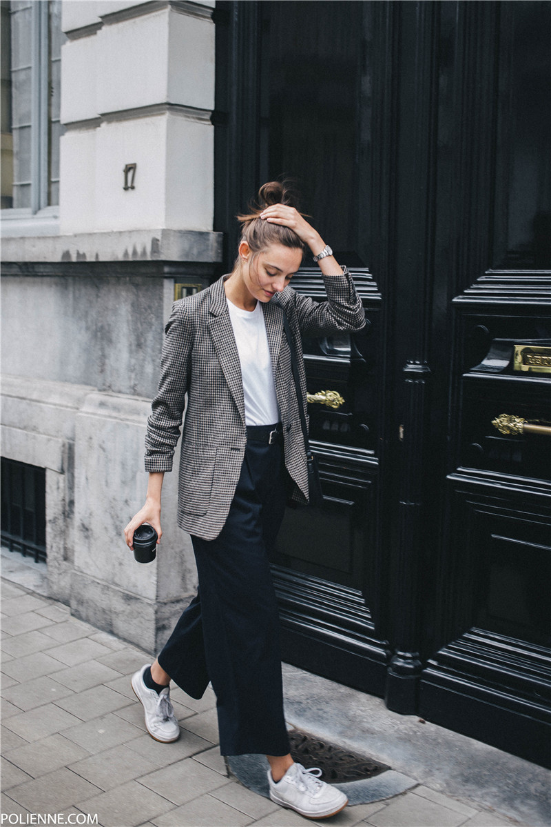 Autumn fashion street filming thousand birds grid, a button, handsome, long suit of Mao suit.