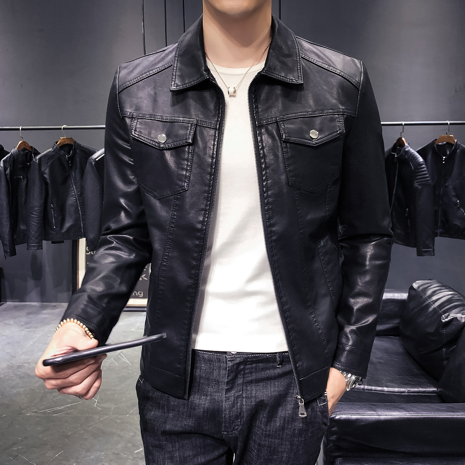 Leather men's jacket x1