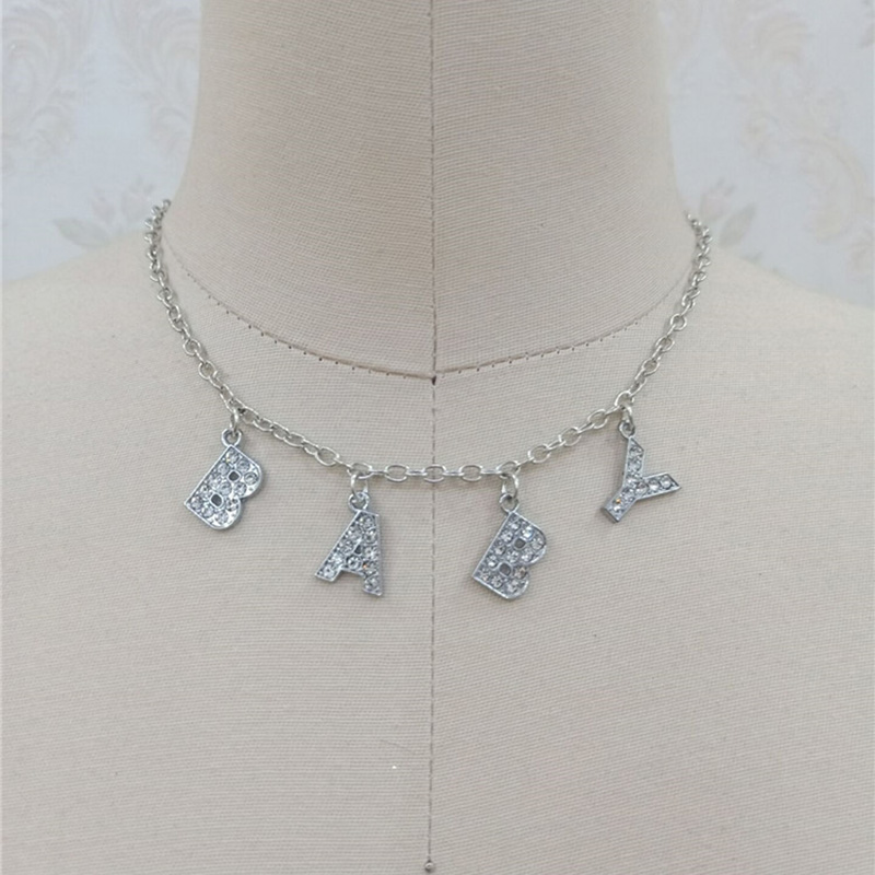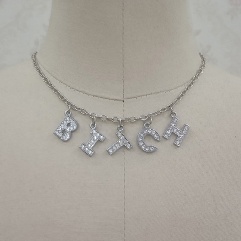 Fashion Bitch Angel Baby Daddy Rhinestone Letter Necklace Choker For Women