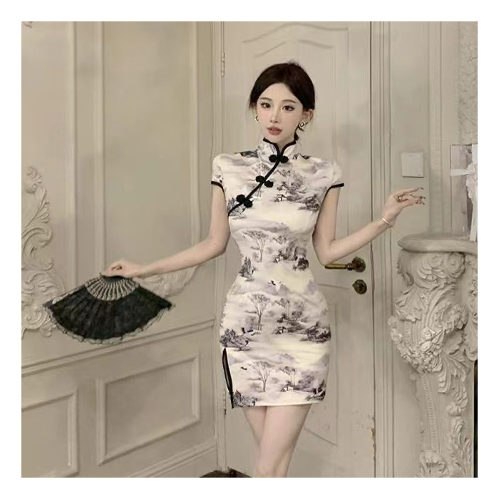 Product information: Material: Polyester Color: Picture color Sleeve type: Princess sleeves Size: S,M,L,XL Style type: Art retro Skirt length: mid skirt Skirt Category: Dress Style: Chinese style