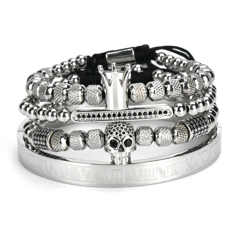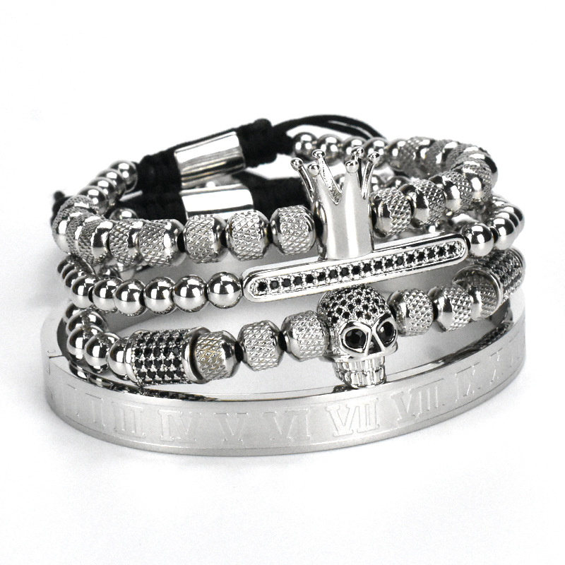 Product Information:Material: stainless steelTreatment process: electroplatingStyle: UnisexColor: Black, gold, steelPacking list:Bracelet *4PCS(1SET)