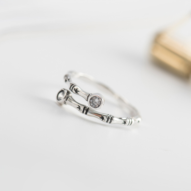 Sterling Silver Ring Female Diamond Thai Silver Ring Retro Personality Simple Bracelet