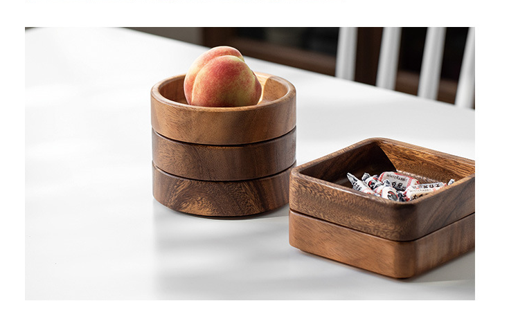 Purpose: storage boxWood type: natural woodLength: 15CMHeight: 4CMThickness: 2CMWidth: 15CMSpecification: square wooden bowl, round wooden bowlInternal size: 15*15*4CM