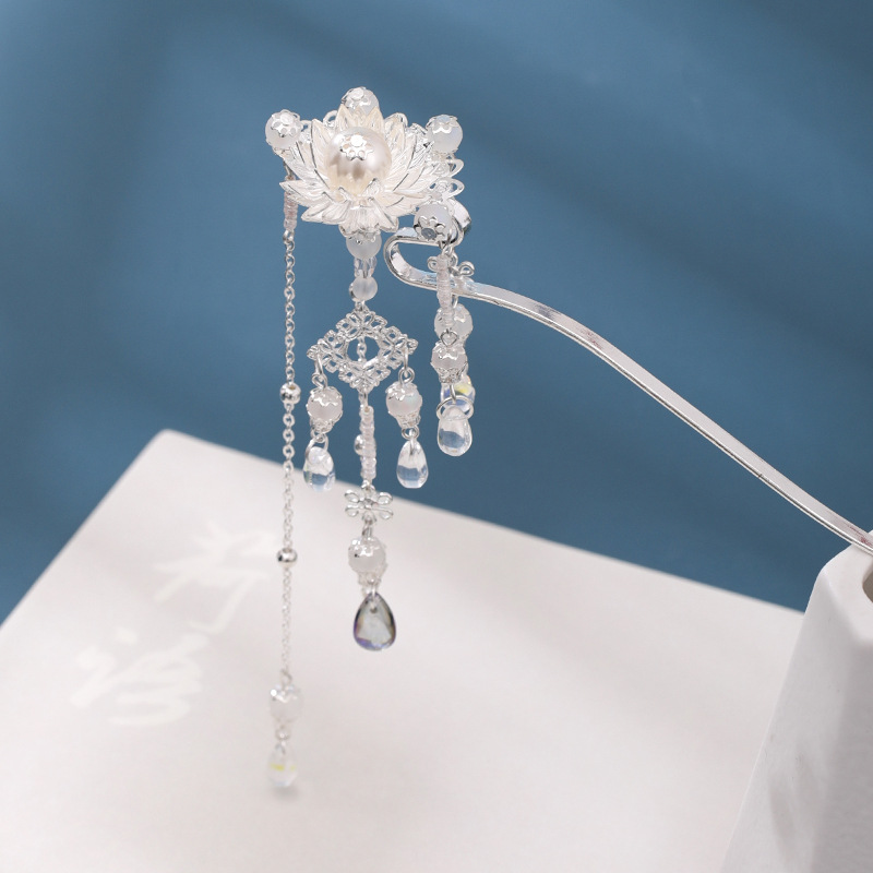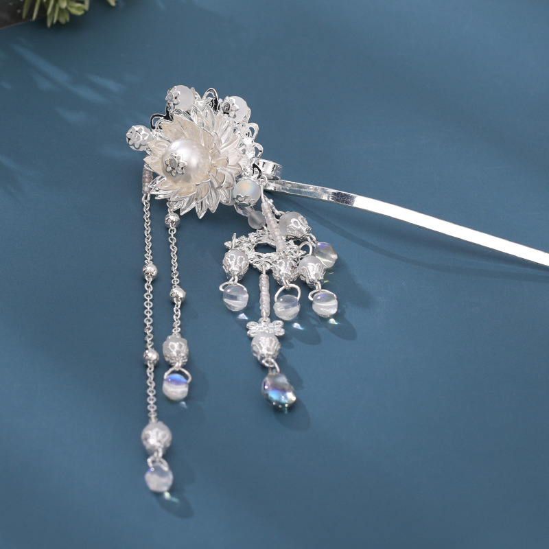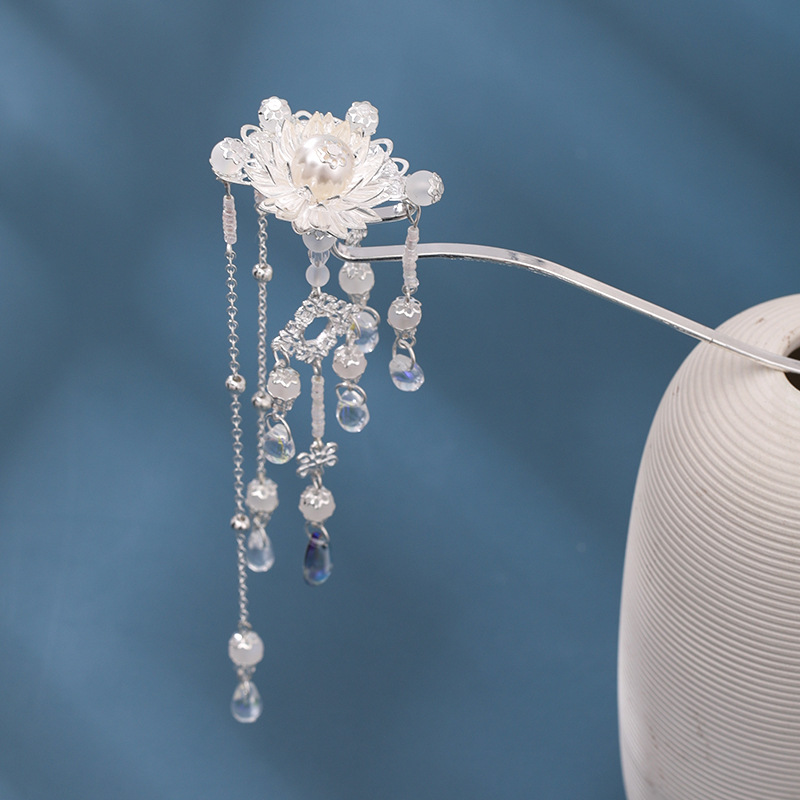 Specification:Material: AlloyStyle: VintageModeling: FlowersProcessing technology: ManualPackaging: Individually packedSize: Hairpin 16, flow comb 15cmWeight: 25g