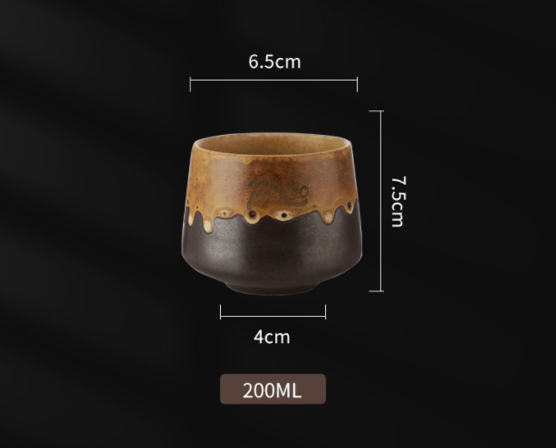 Product information:Color: yellow glaze, green spray, Brown White, snowflake Brown White, gradient yellow Material: Ceramic Applicable people: general Style: Retro Capacity: 200ml