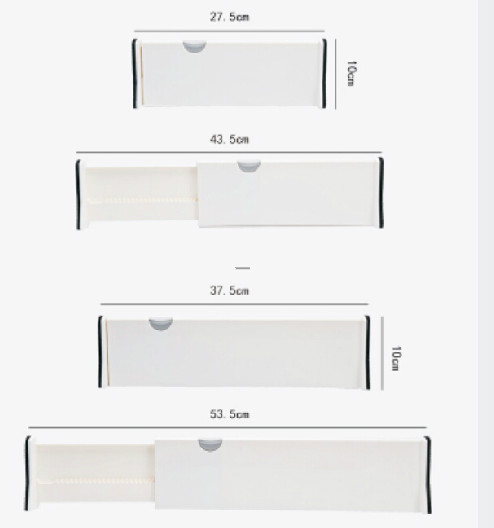 Product name: Layered partitionProduct material: absProduct color: whiteProduct size: A: Front stretch: 28.3 * 10cmAfter stretching: 44 * 10cmB: Before stretching: 38 * 10cmAfter stretching: 54.2 * 10cm