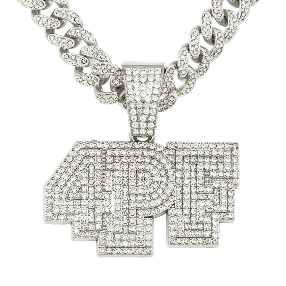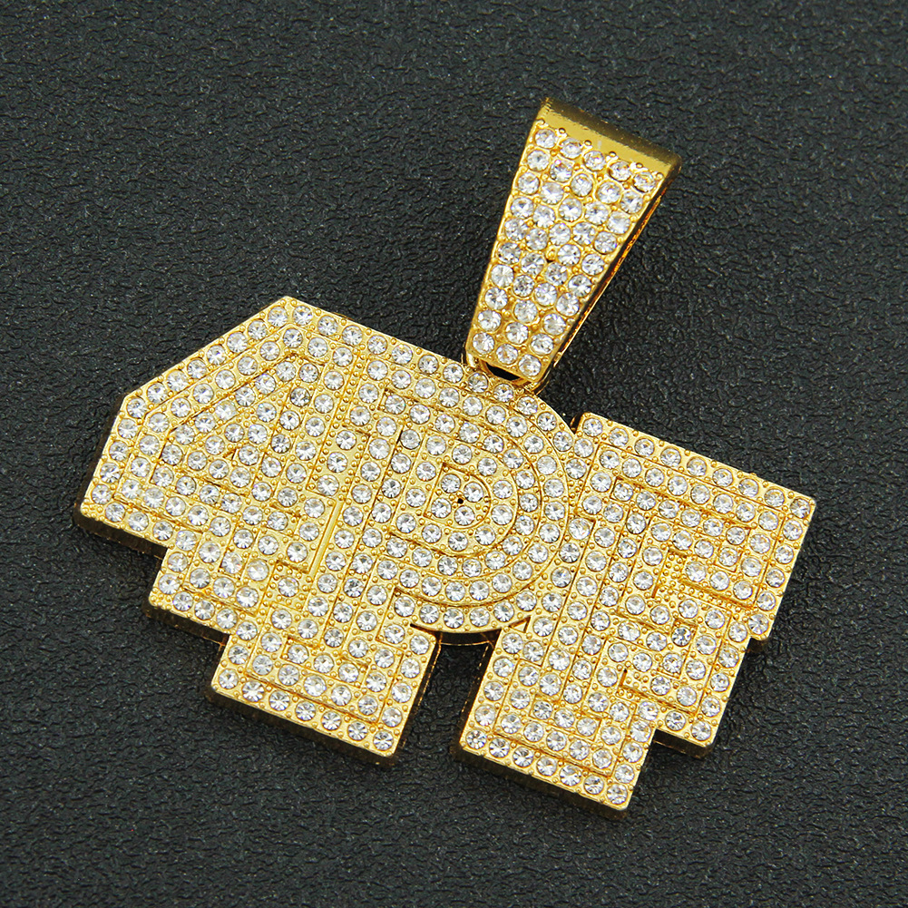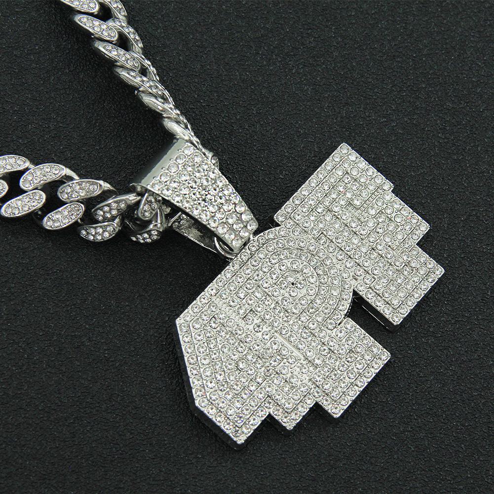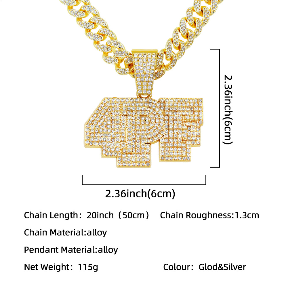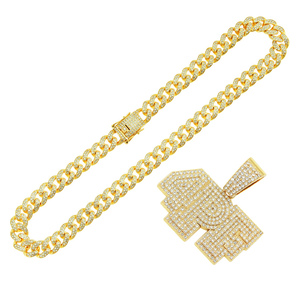 Product Information:Style: Hip HopMaterial: AlloyTreatment process: diamond insertStyle: Men'sShape: Geometric typeColor: Gold, silverStyle :50cm Cuban chain, single pendantSize: