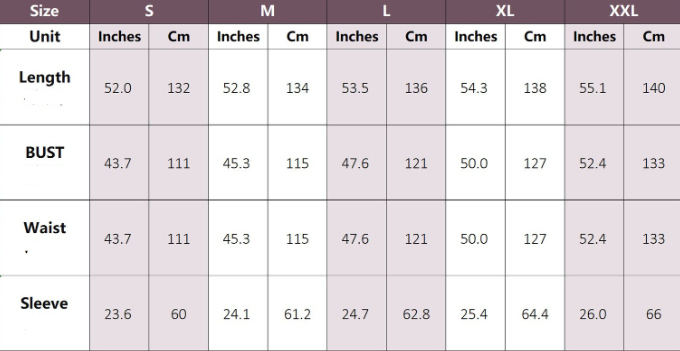 1. Asian sizes are 1 to 2 sizes smaller than European and American people. Choose the larger size if your size between two sizes. Please allow 2-3cm differences due to manual measurement. 2. Please check the size chart carefully before you buy the item, if you don't know how to choose size, please contact our customer service. 3.As you know, the different computers display colors differently, the color of the actual item may vary slightly from the following images.