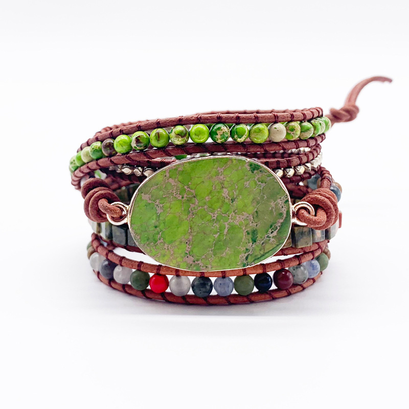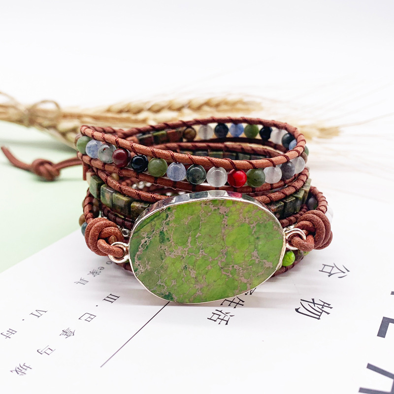 Name: Multi-layer leather braceletSize: Bead length 82cm, total length about 91cm, there will be a little error, please mainly receive the actual objectMaterial: Natural Stone