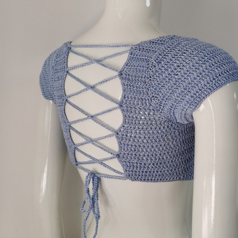Product information:Pattern: solid color Fabric name: Polyester Fiber Color: Black, Blue Size: S,M,L,XL Style: slim fit Style: European and American style Craft: crocheted Hollow