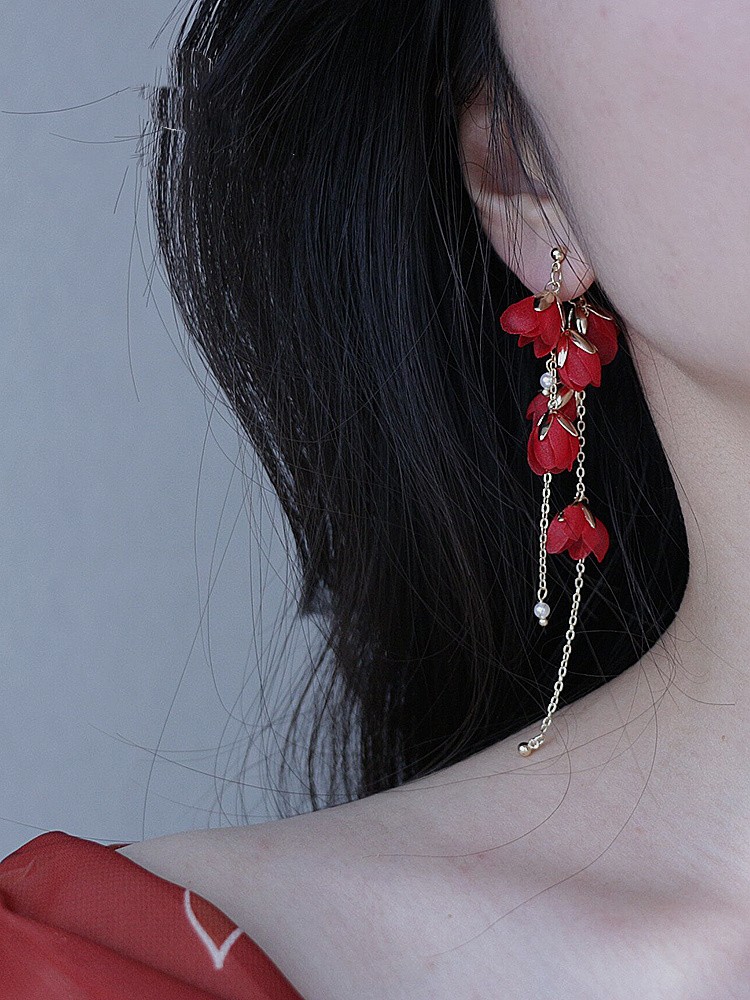 Product information:Material: Alloy/silver plated/gold plated Applicable Gender: Female Color classification: Cherry blossom powder auricular needle pairs, red needle pairs,
