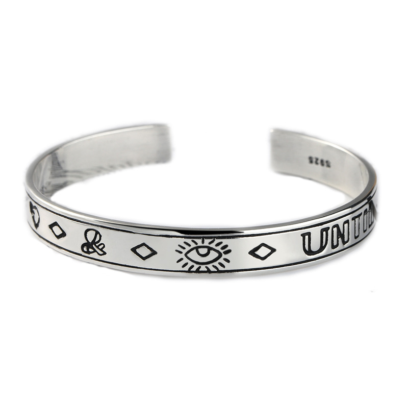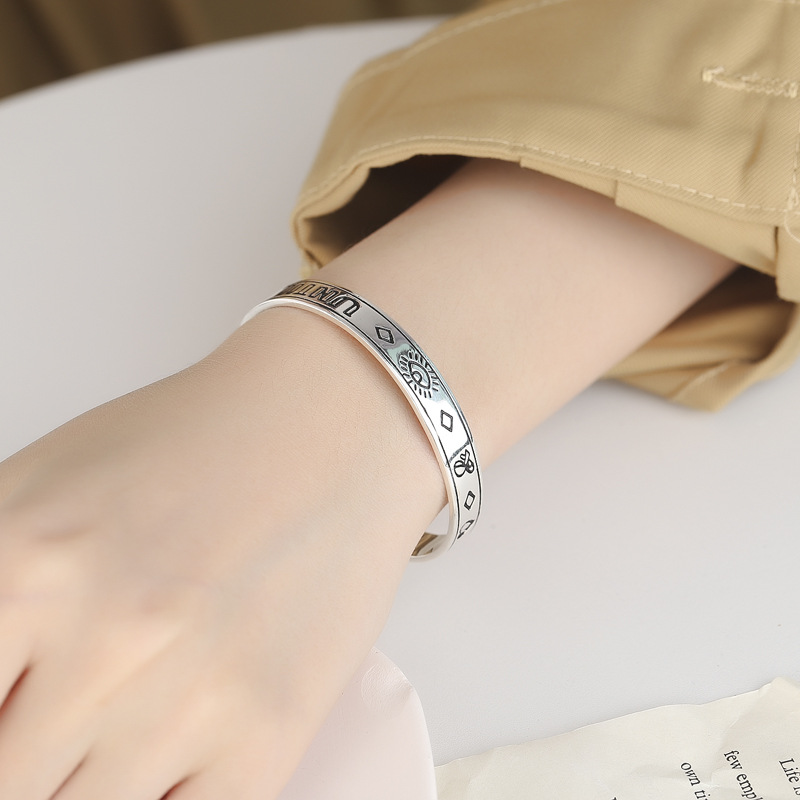 S925 Sterling Silver Vintage Eye Love English Letter Bracelet