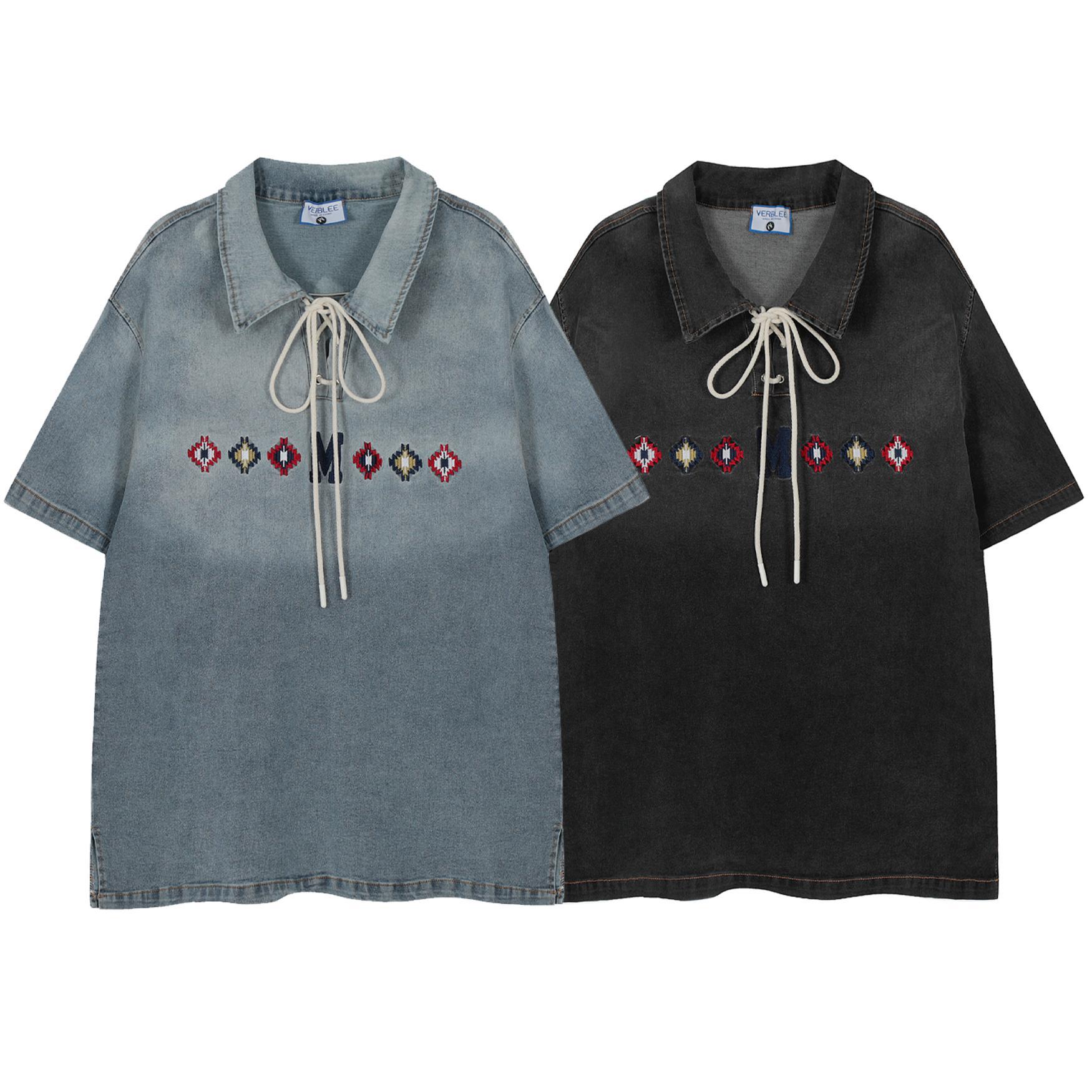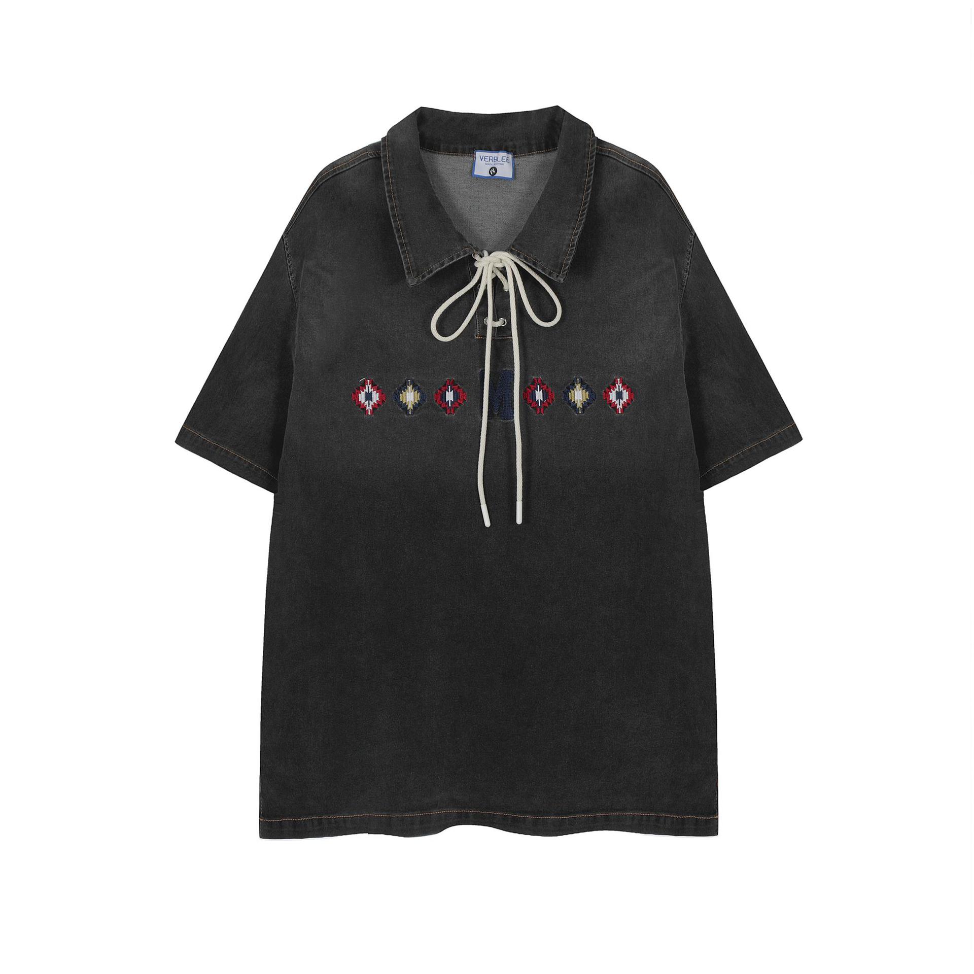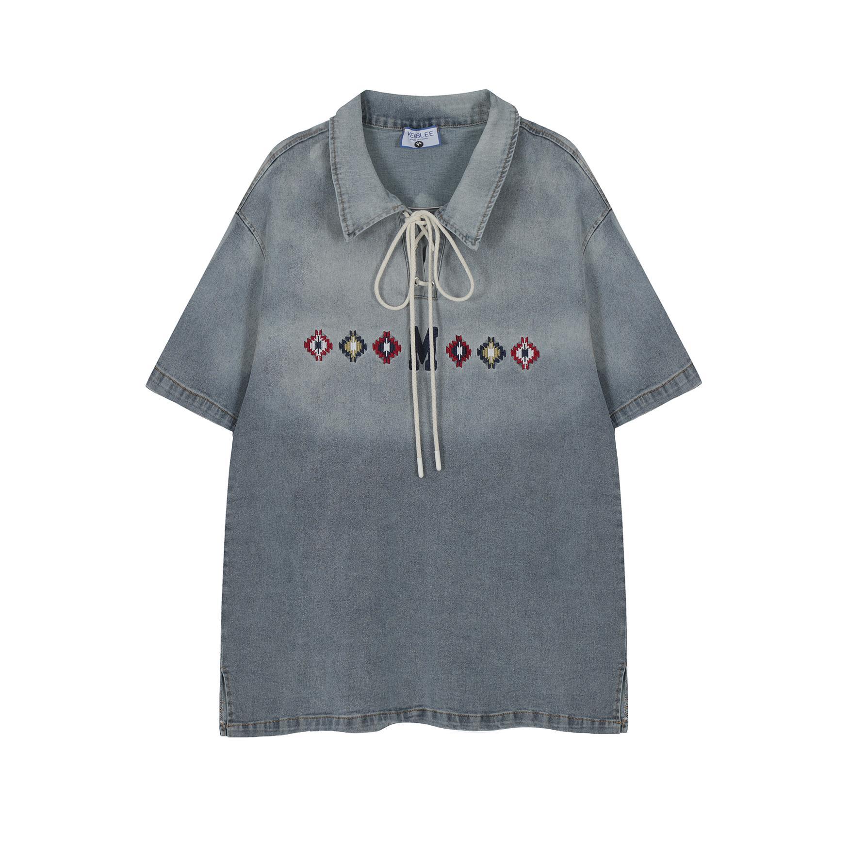 Product information: Pattern: Embroidery Color: Black, Blue Size: M,L,XL Version: Loose Style: pullover Main fabric composition: Cotton Hooded or not: no Hooded Sleeve length: short sleeve