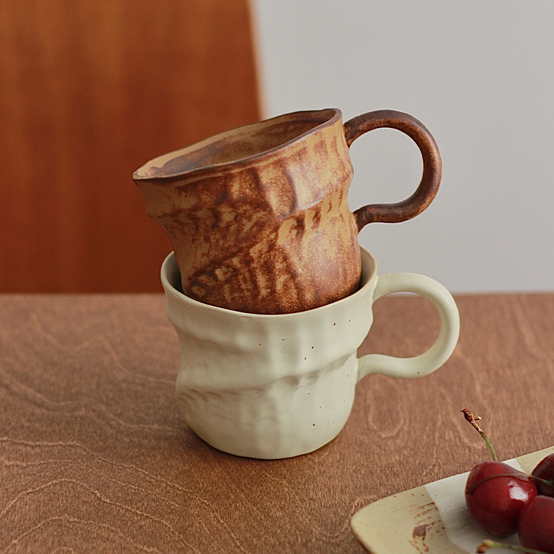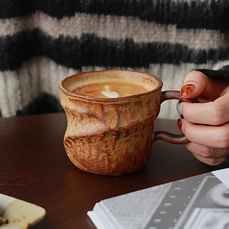 Japanese Retro Wabi Sabi Style Coffee Cup Irregular Handmade Coarse Pottery