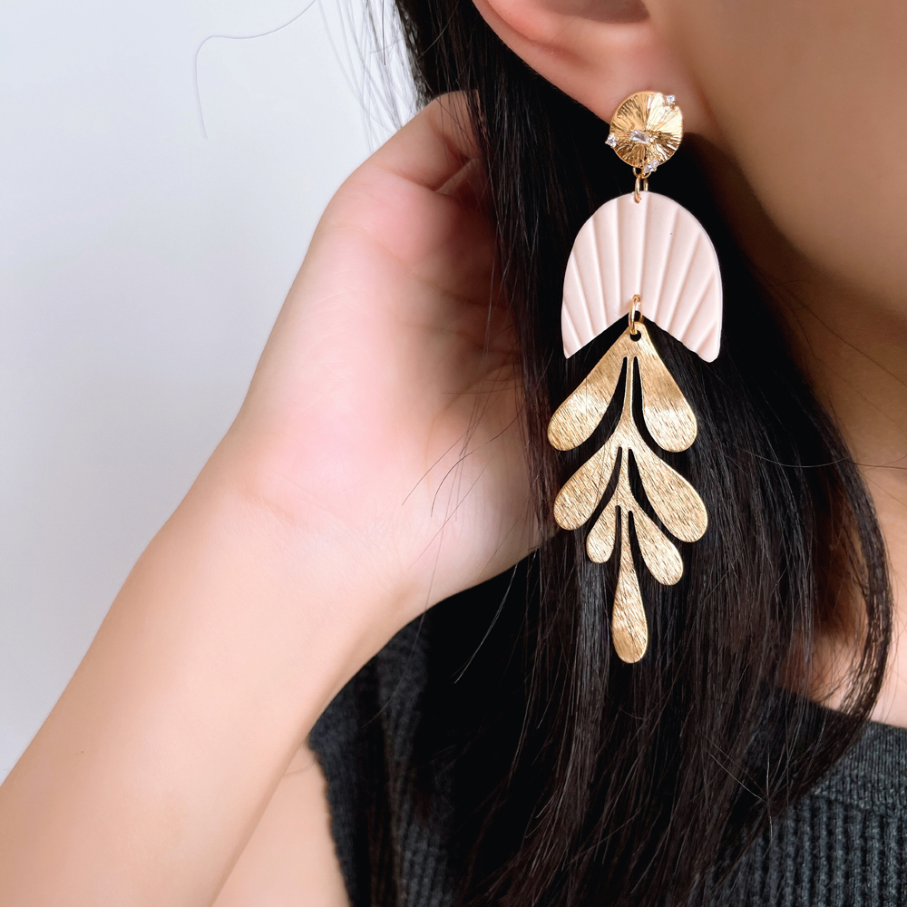 Product information:Type: earrings Material: gold-plated alloy brass pottery clay Applicable Gender: Female Color classification: design SMART Blade gold plated 925 needle