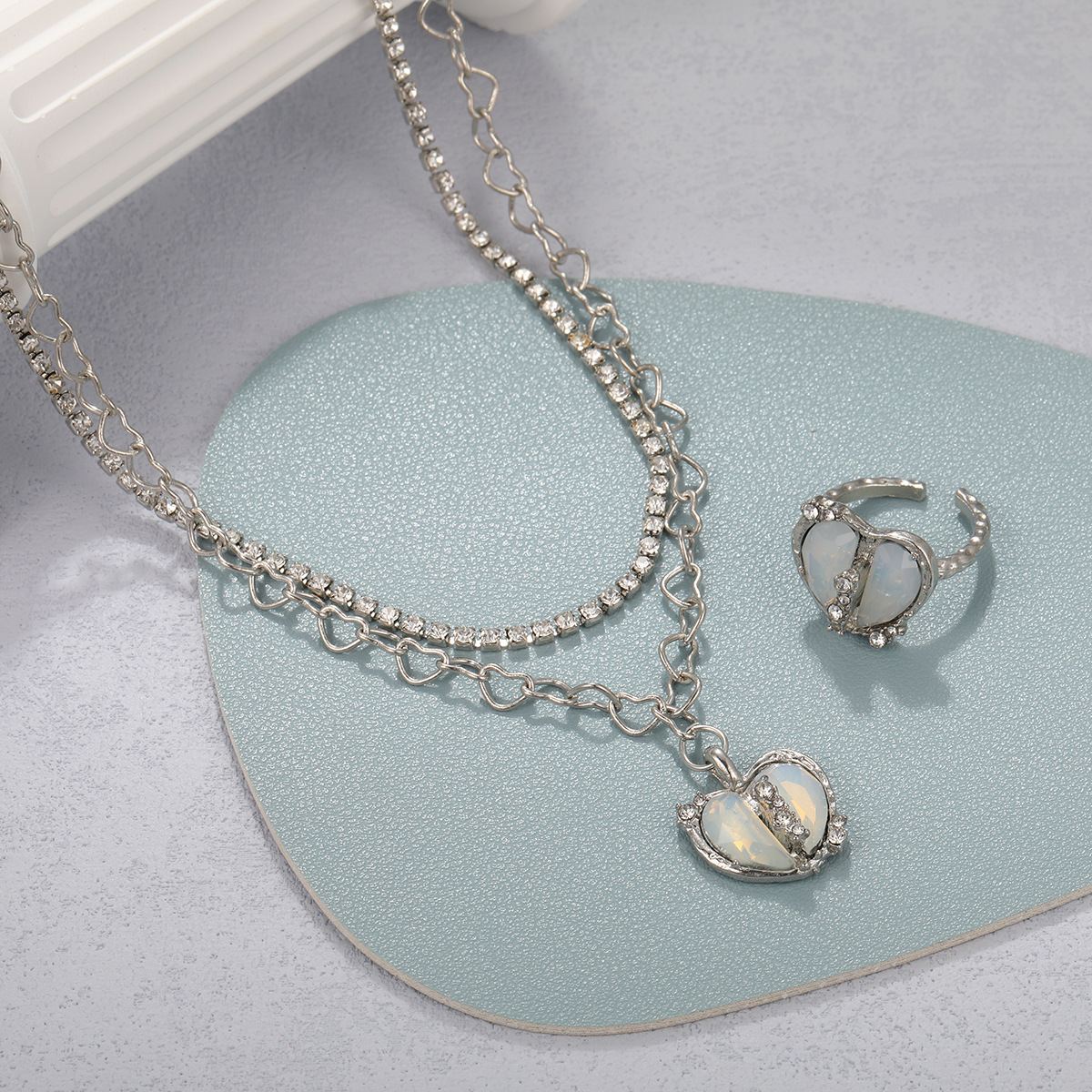 Love Heart-shaped Ring Jewelry Suit Women
