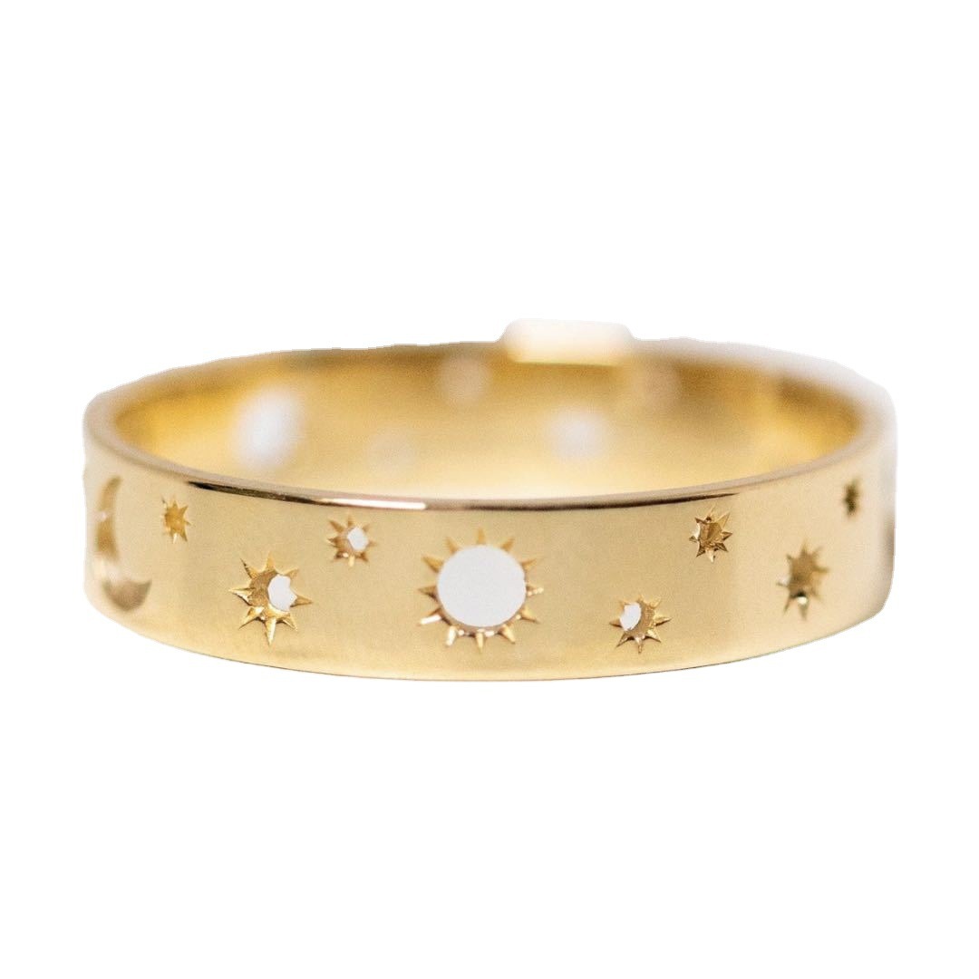 Product information:Type: Rings, RingsMaterial: AlloyStyle: naturalStyle: StarTreatment process: electroplatingInlaid material: not inlaidSize: No. 5, No. 6, No. 7, No. 8, No. 9, No. 10, No. 11Popular elements: metalPacking list:Ring*1