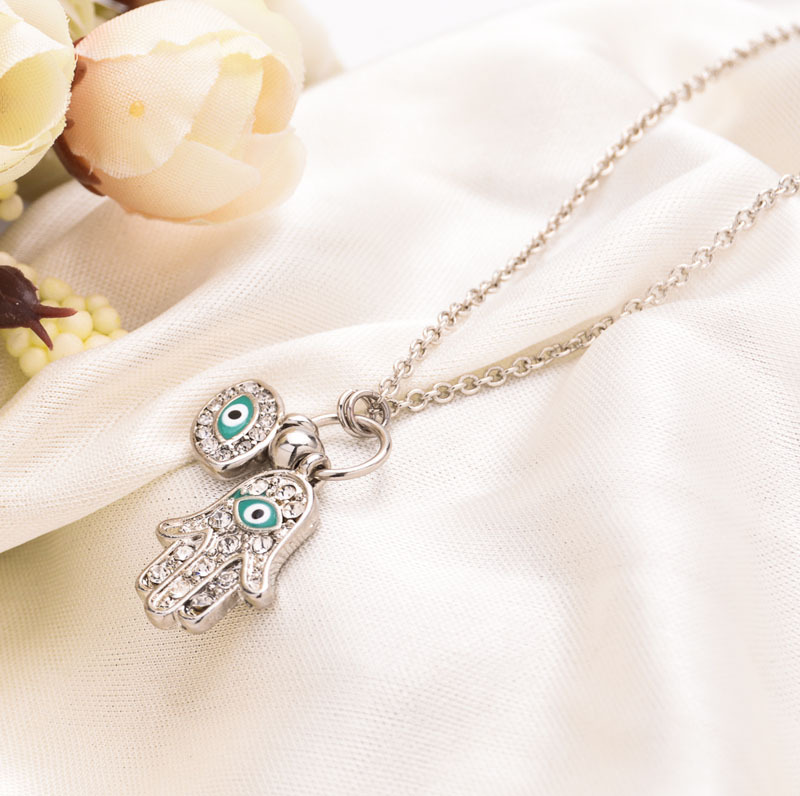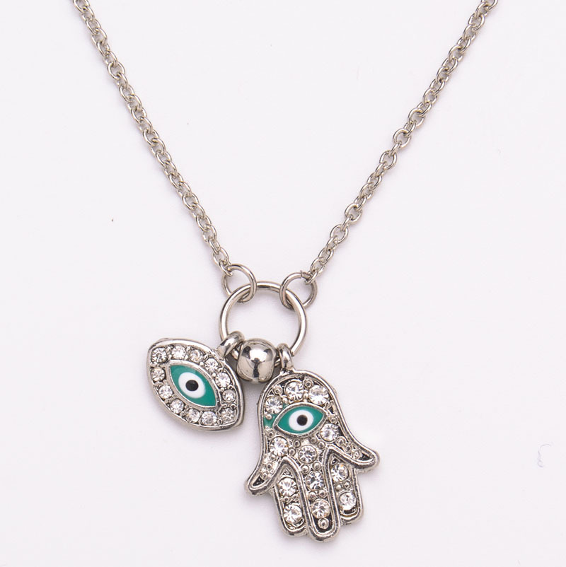 product informationName: Hand of Fatima Blue Eye NecklaceColor: gold, silverMaterial: zinc alloy + ironTotal length: 45+7cm