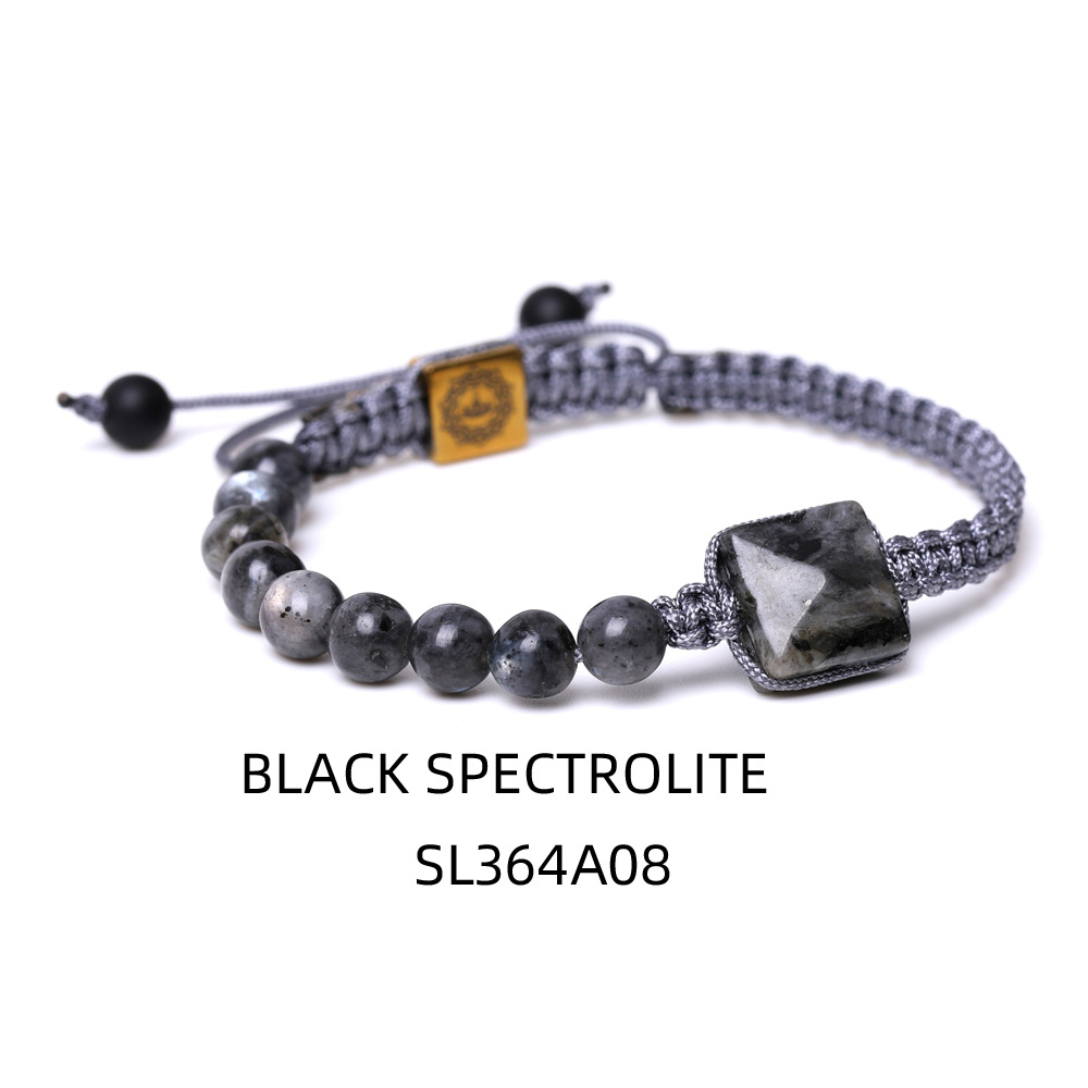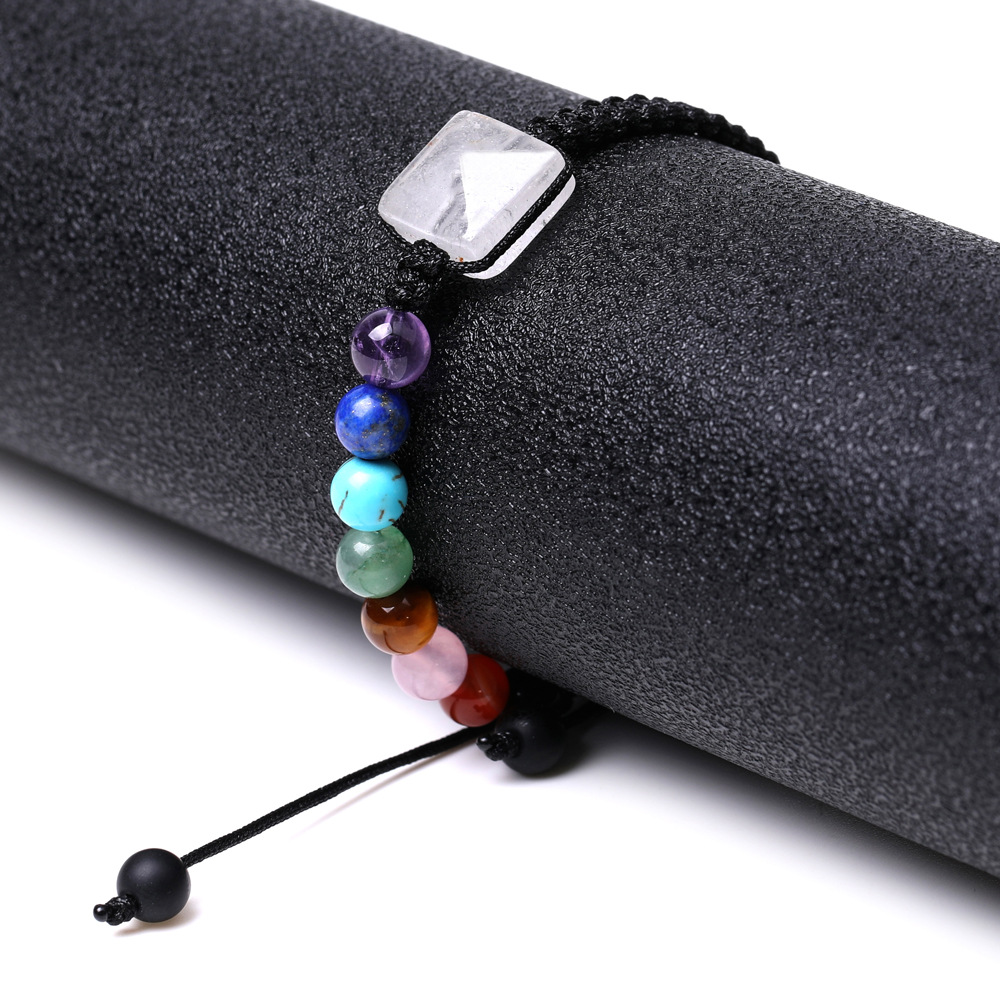 Color: SL364A01 6mm colorful beads pyramid braided bracelet, SL364A02 6mm green aventurine pyramid braided bracelet, SL364A03 6mm pink crystal pyramid braided bracelet, SL364A04 6mm Tigereye pyramid braided bracelet, SL364A05 6mm amethyst pyramid braided bracelet, SL364A06 6mm obsidian pyramid braided bracelet, SL364A07 6mm white crystal pyramid braided bracelet, SL364A08 6mm black glitter stone pyramid braided bracelet, SL364A09 6mm lapis lazuli pyramid braided bracelet