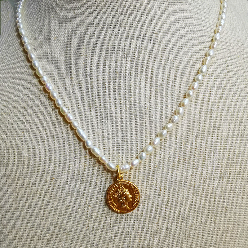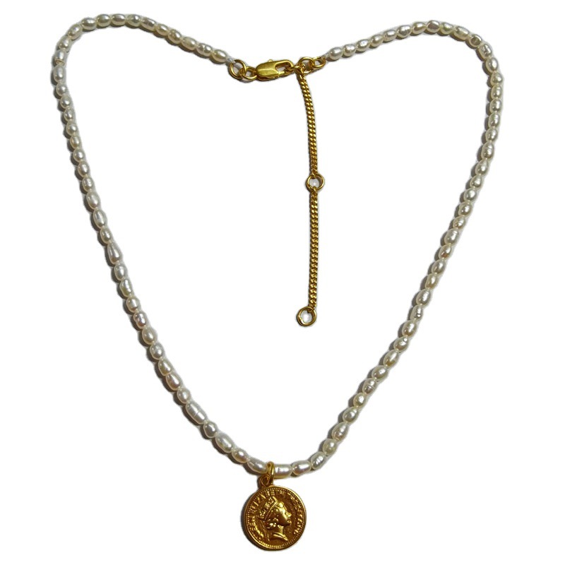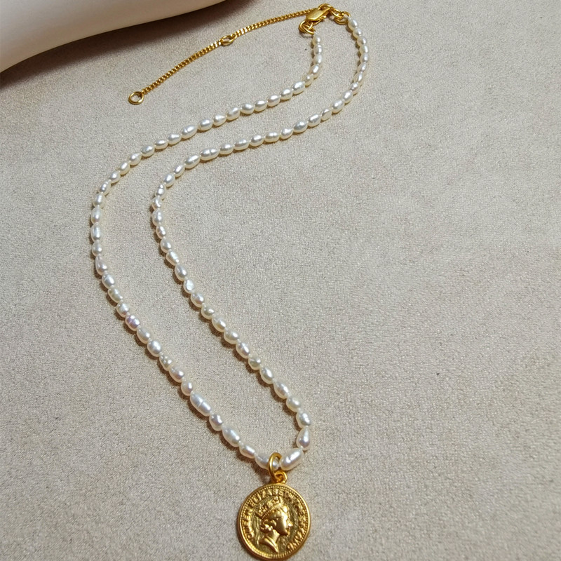 Product material: copper plated real gold + natural pearl + pearl chain about 38 cm long + 8 cm extension chain