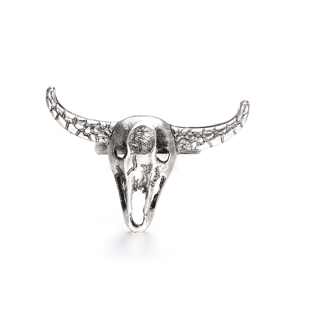 Simple Retro Antique Silver Bull Head Ring