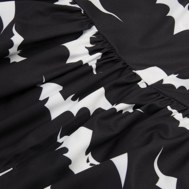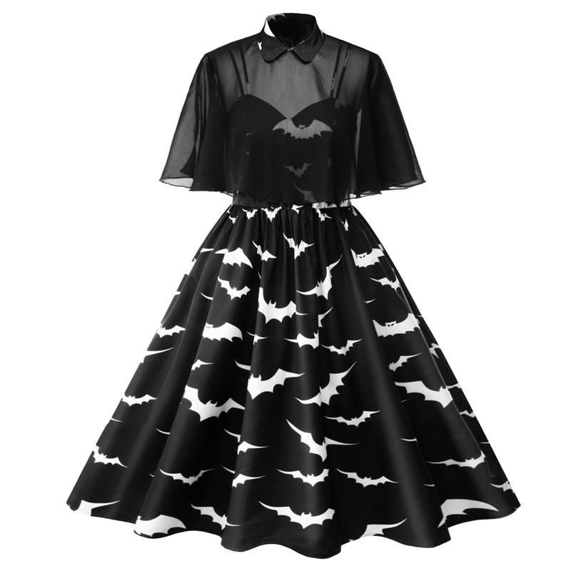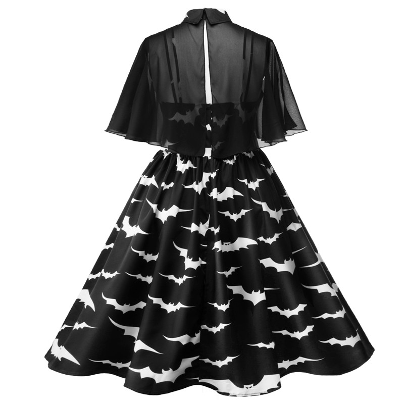 Retro print dress with sling shawl