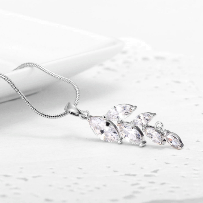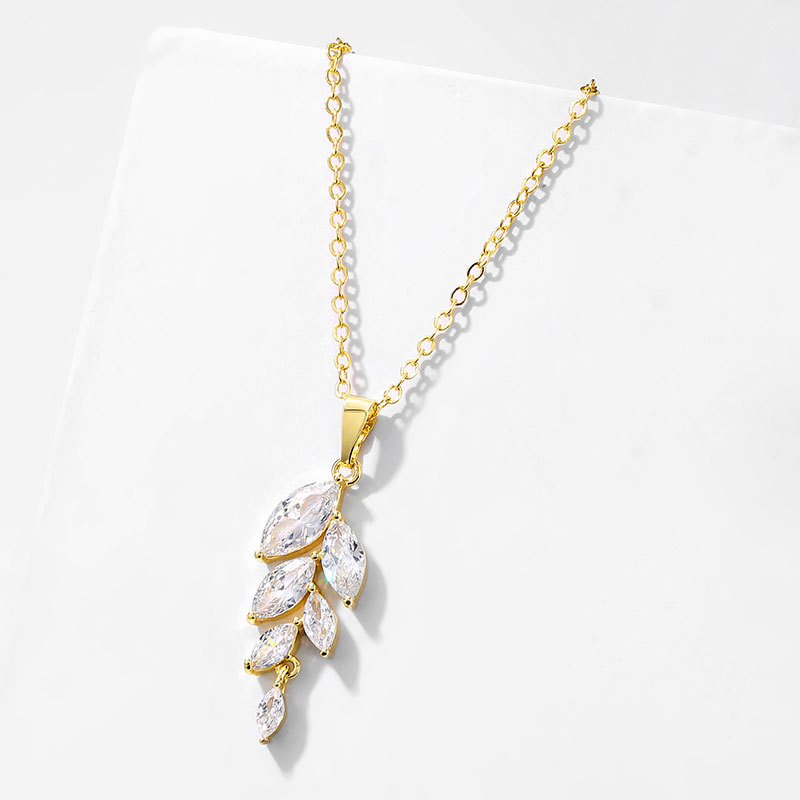 Fashion Creative Leaf Shaped Zircon Pendant Exquisite Copper Gilded Girls Necklace