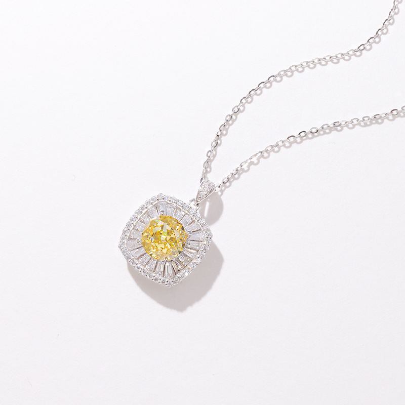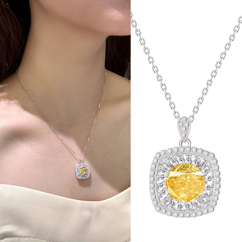Fashion Design Yellow Zirconium Small Square Necklace