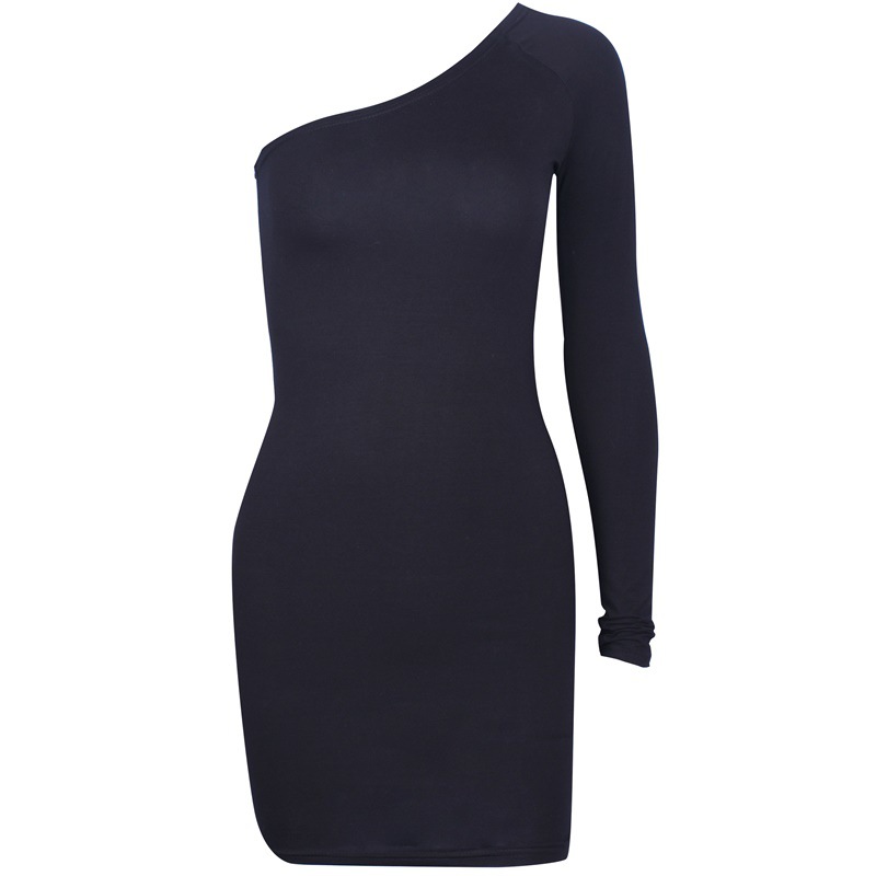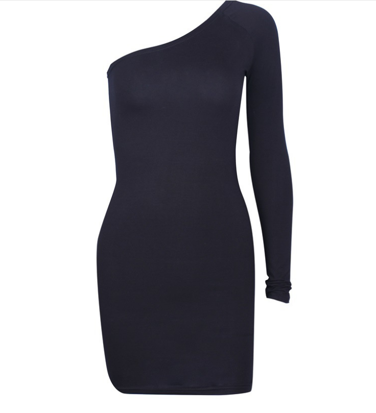 Slim Slim Shoulder Long Sleeve Dress Solid Color One-Shoulder Dress