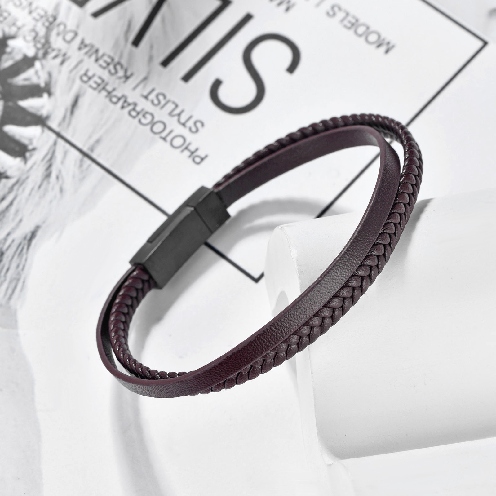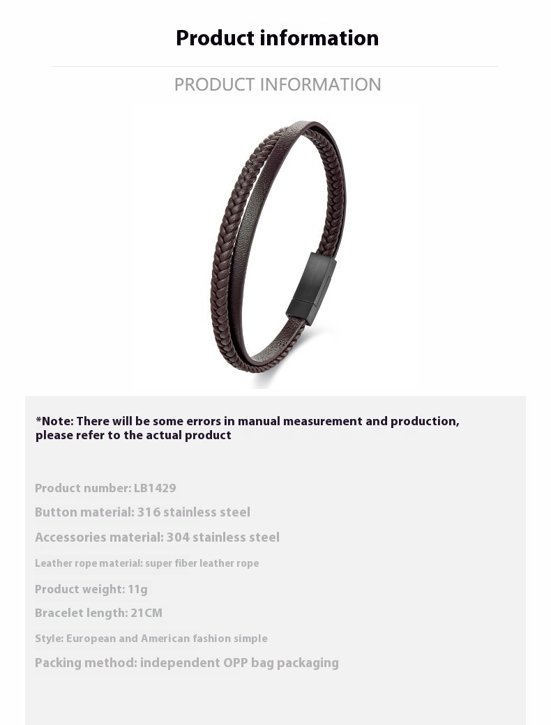 Product information:Treatment Process: ElectroplatingColor: Black 19CM, black 21CM, black 23CM, Brown 19CM, Brown 21CM, Brown 23CMStyle: Men'sMaterial: Stainless steelShape: GeometricPopular elements: RingStyle: Simple