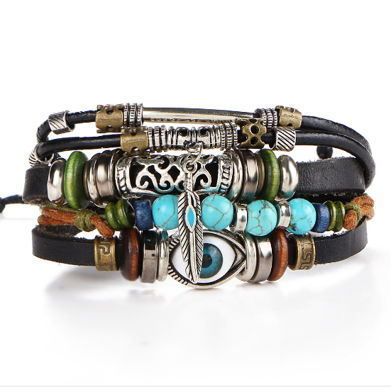 New Blue Eye Bracelet Beaded Multilayer Cowhide Bracelet Carved Bracelet