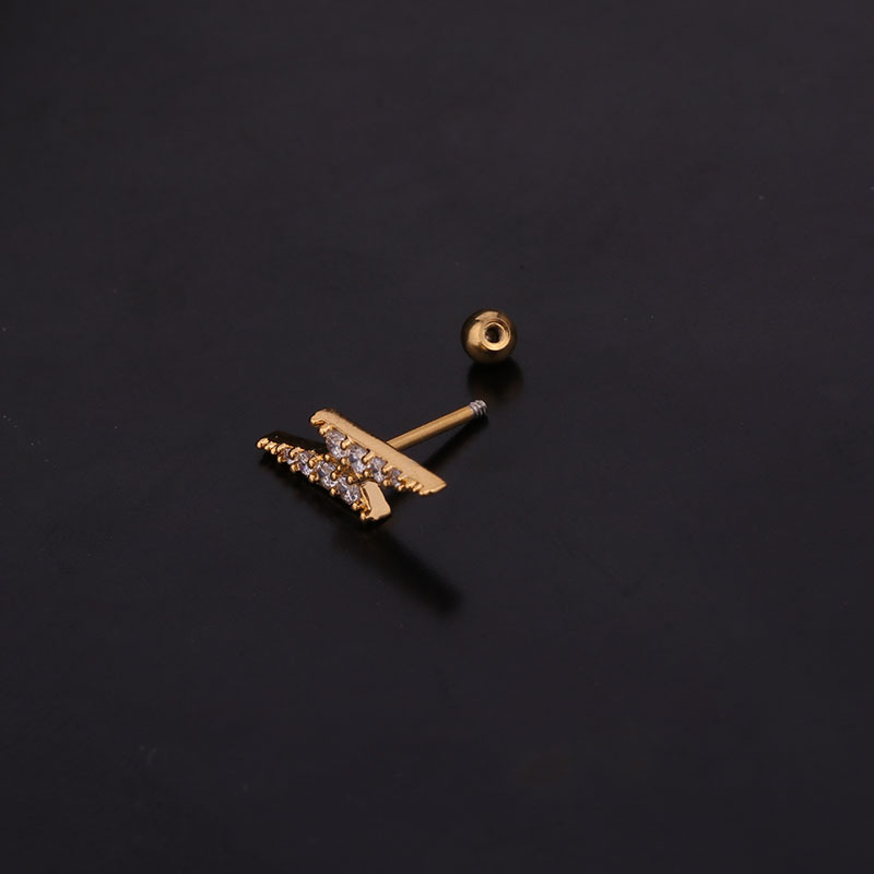 Piercing Thread Earrings Creative Lightning Stainless Steel Earrings Female Zircon Ear Bone Studs Fashion Jewelry