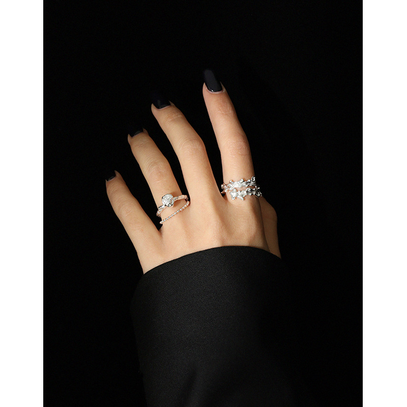 Geometric Irregular Bumpy Round Bead Chain Lava Texture Ring