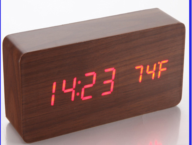Product category: alarm clockDouble sided: single sidedStyle: LeisureAppearance shape: rectangleDisplay type: LEDPower type: BatteryShell material: Wood