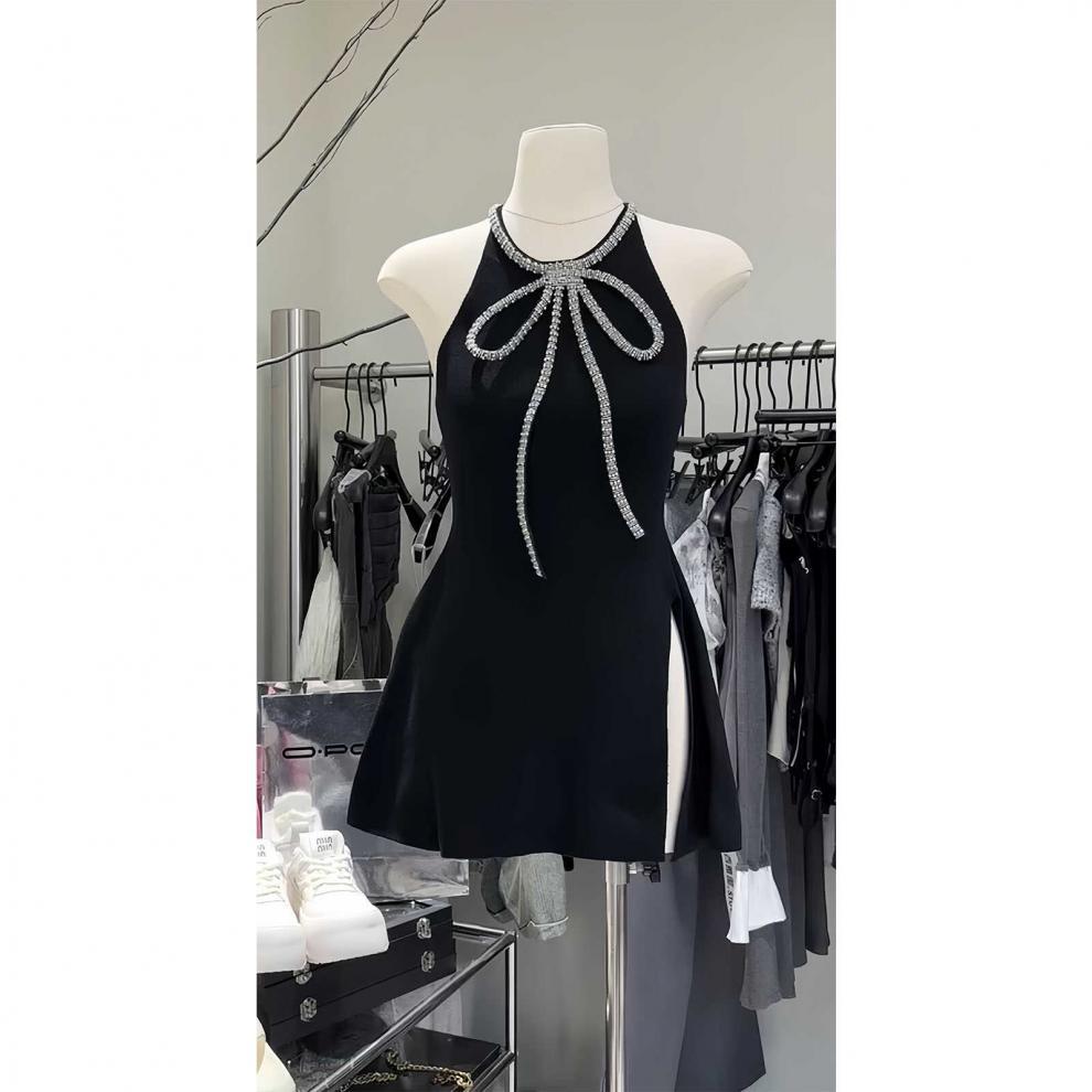 Exquisite Rhinestone Bowknot Fashionable Elegant Sweet And Spicy Top