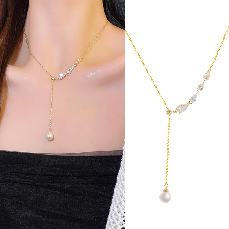Product information:Color: Pearl tassel necklacePendant material: 925 silverChain style: cross chainMaterial: SilverPopular elements: EllipseApplicable people: womenShape: GeometricStyle: affordable luxury style