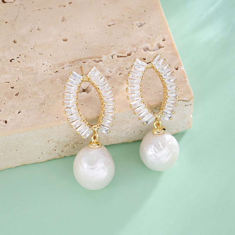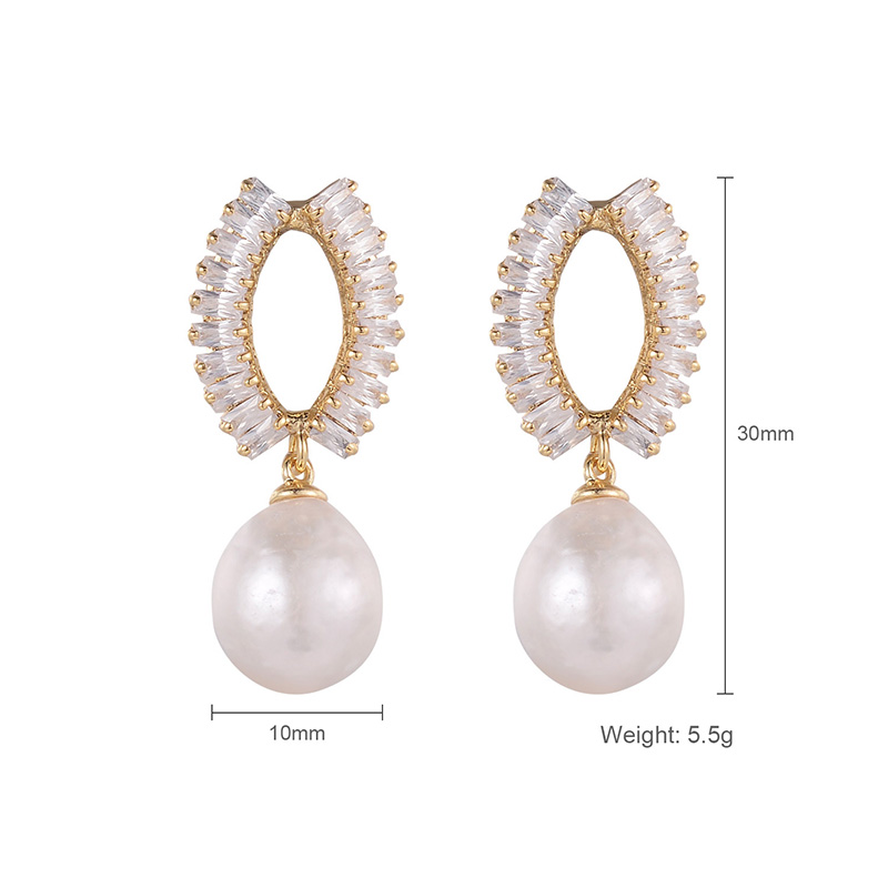 Product Information:Style: European and AmericanMaterial: Copper plated 14K real gold+UV+imitation pearl+zirconType: EarringsStyle: Women'sModeling: GeometryPacking List:Earrings*1