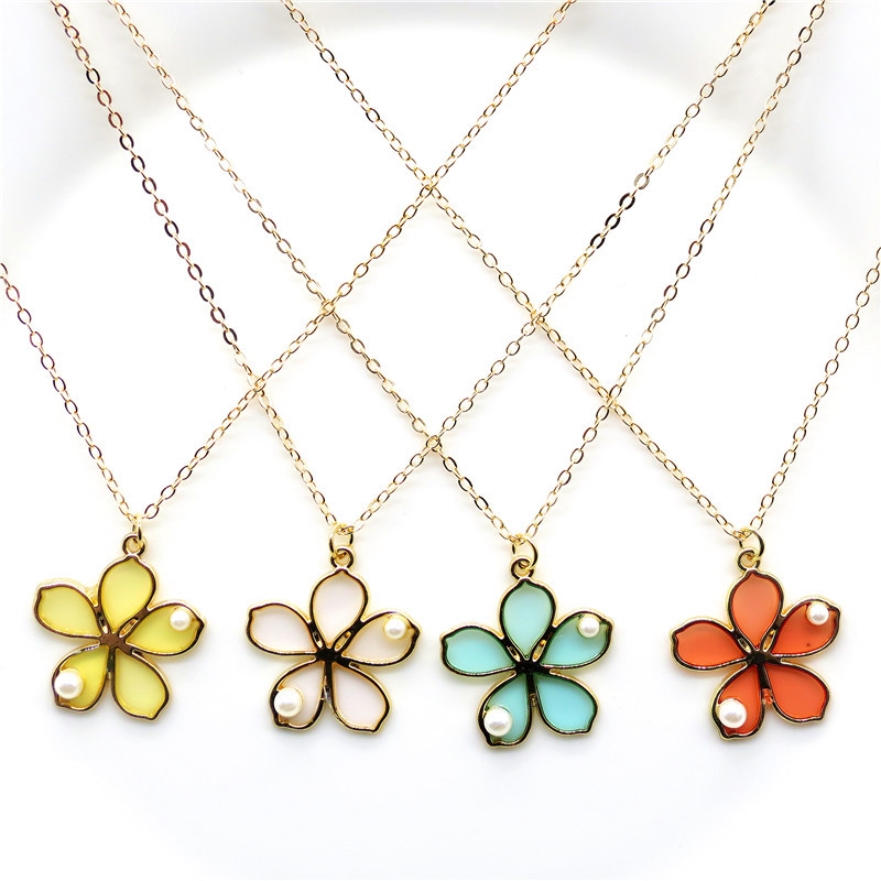 Creative Transparent Paint Flower Pearl Clavicle Necklace With Accessories