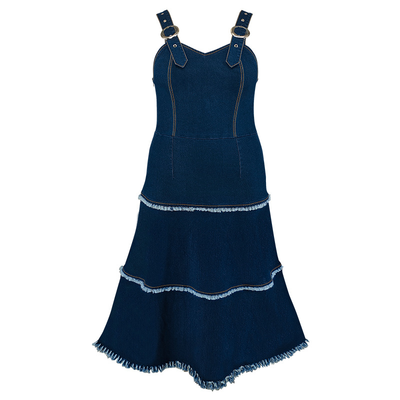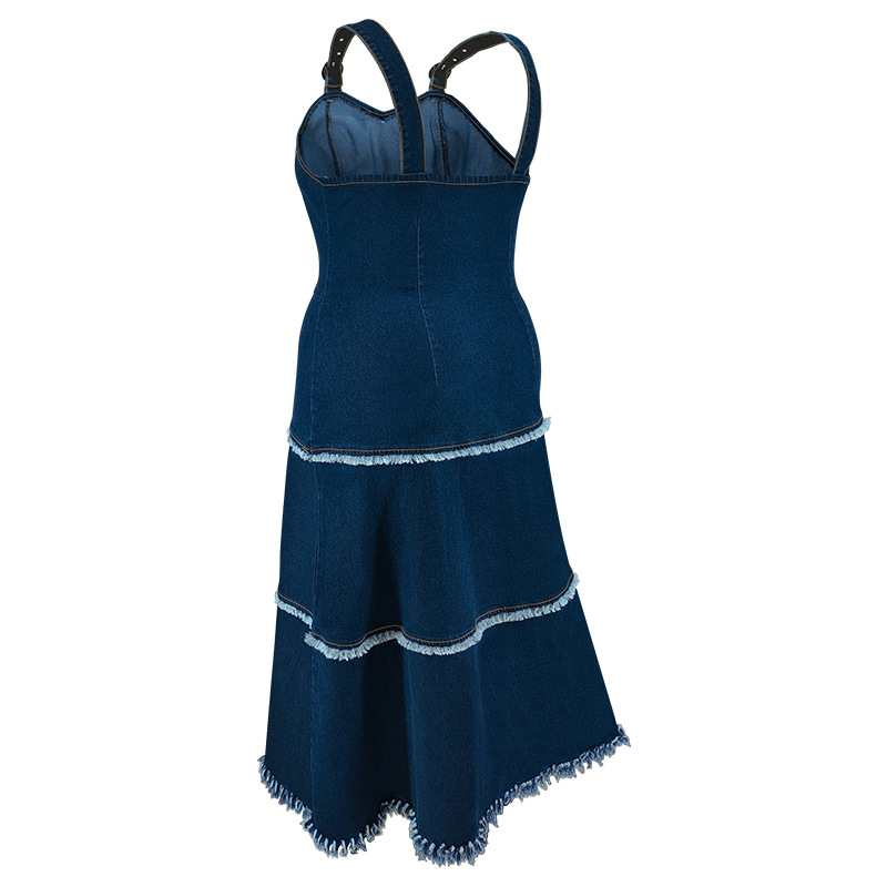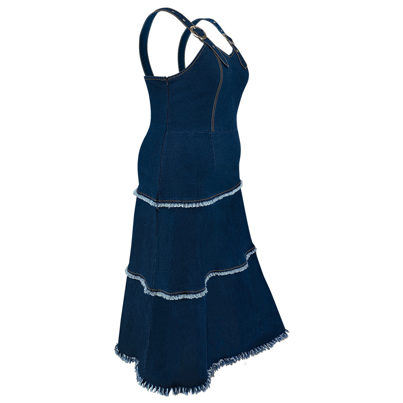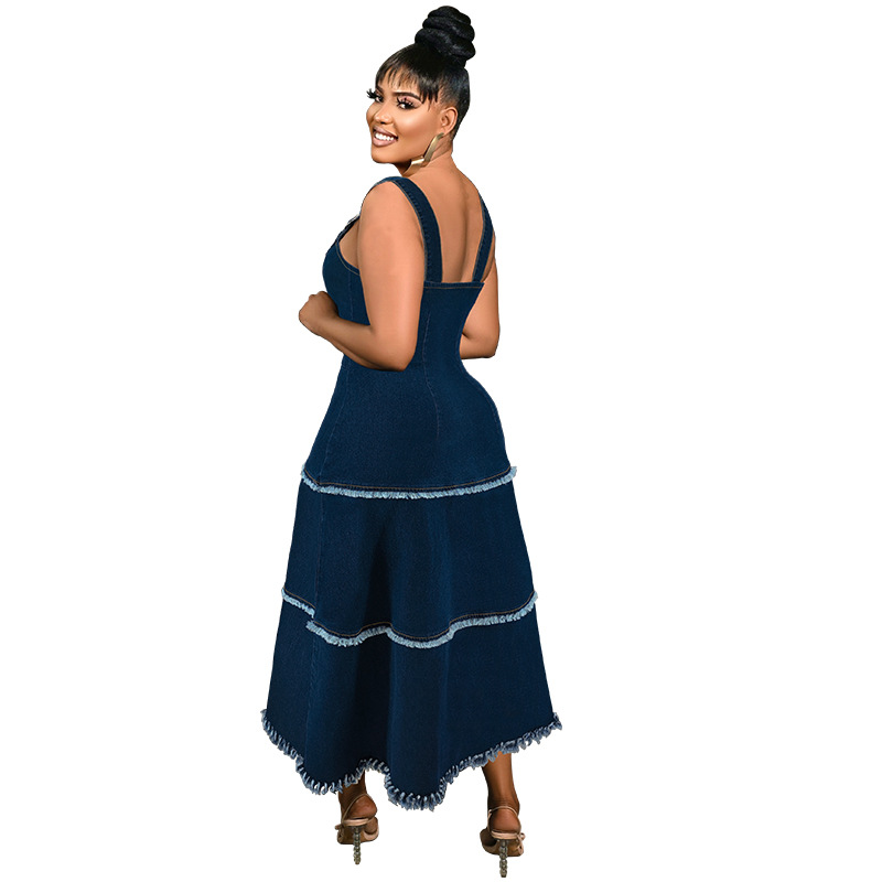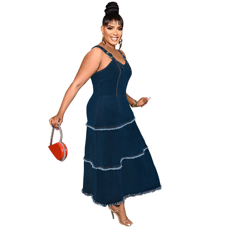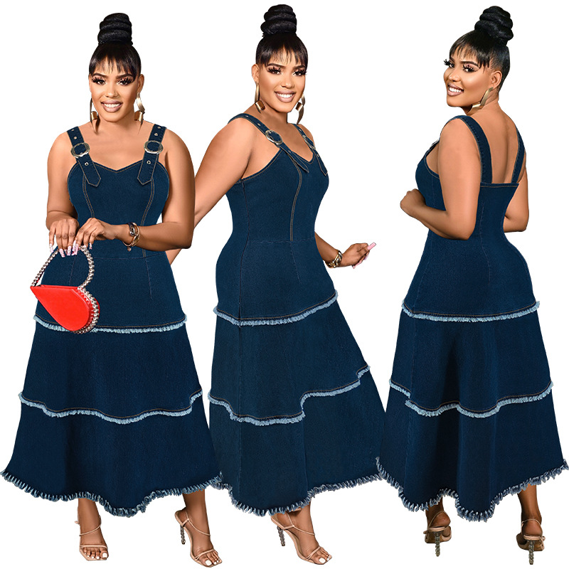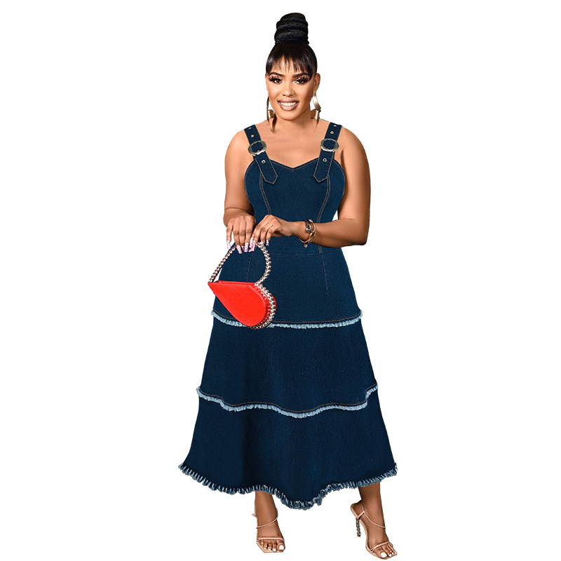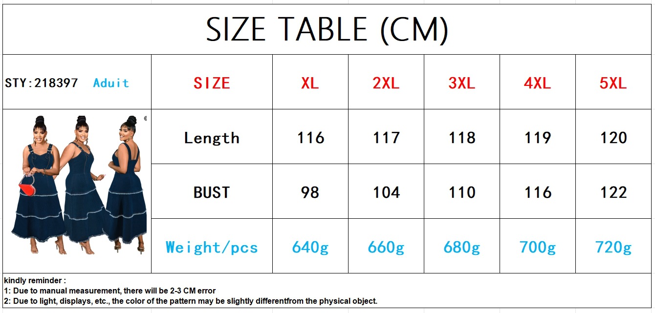 Product information: Fabric name: denim Color: blue Main fabric composition: Cotton Size: 1XL,2XL,3XL,4XL,5XL Skirt Category: Dress Popular elements: suspenders