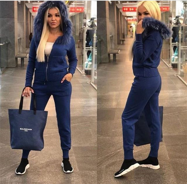 Zipper cardigan sweater trouser suit women's two-piece suit