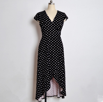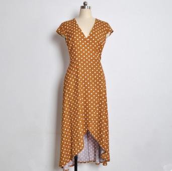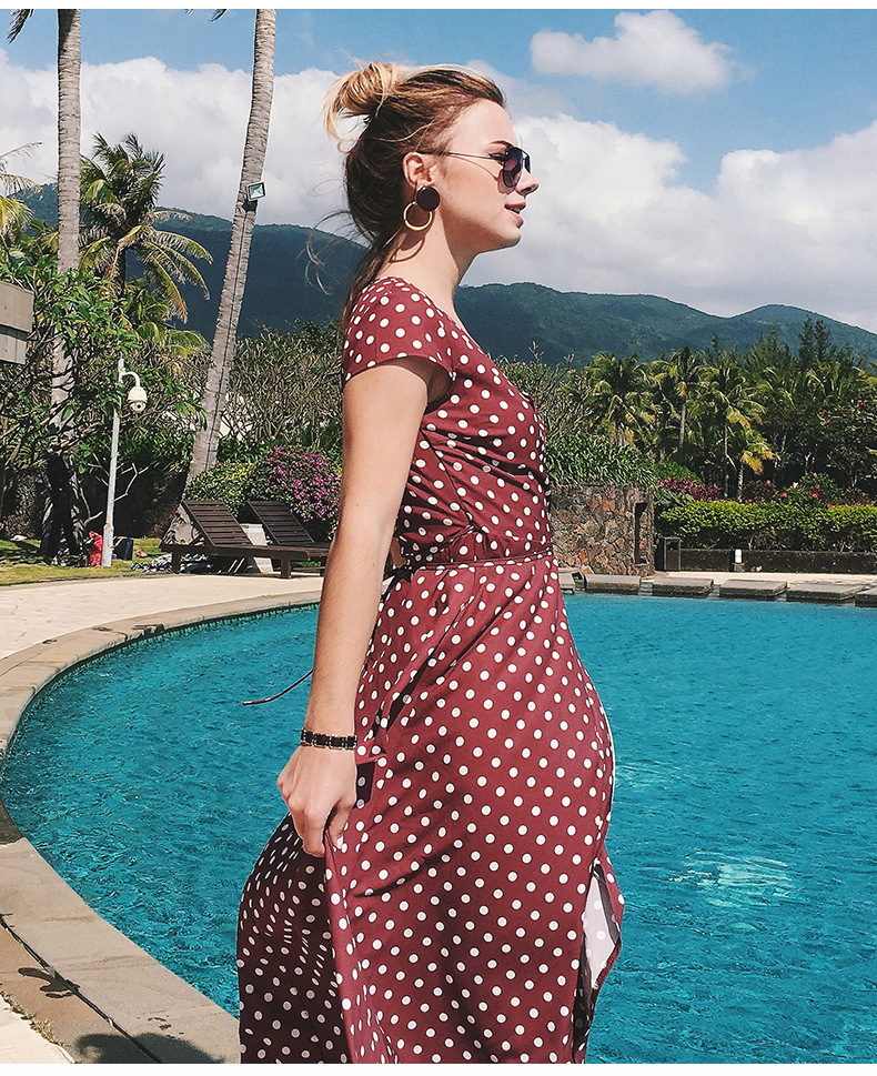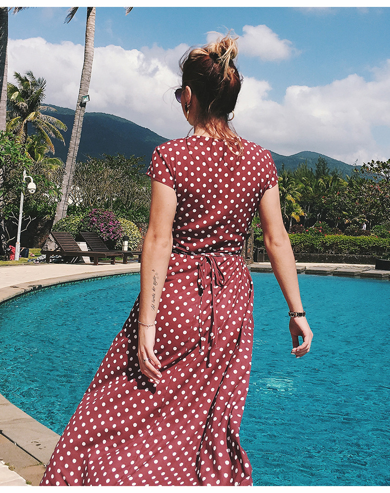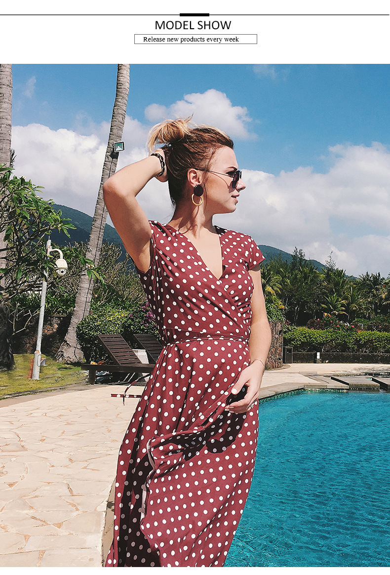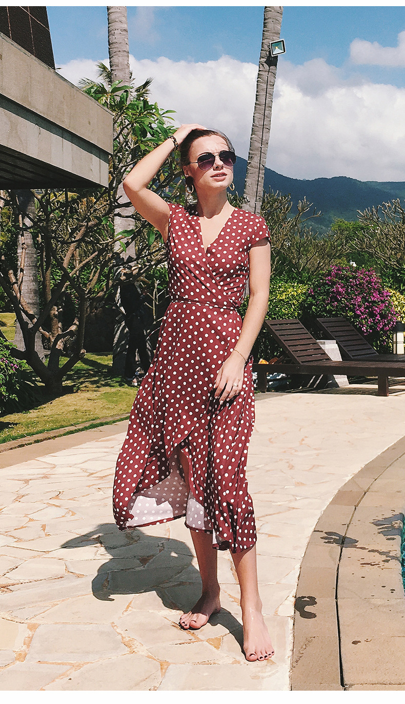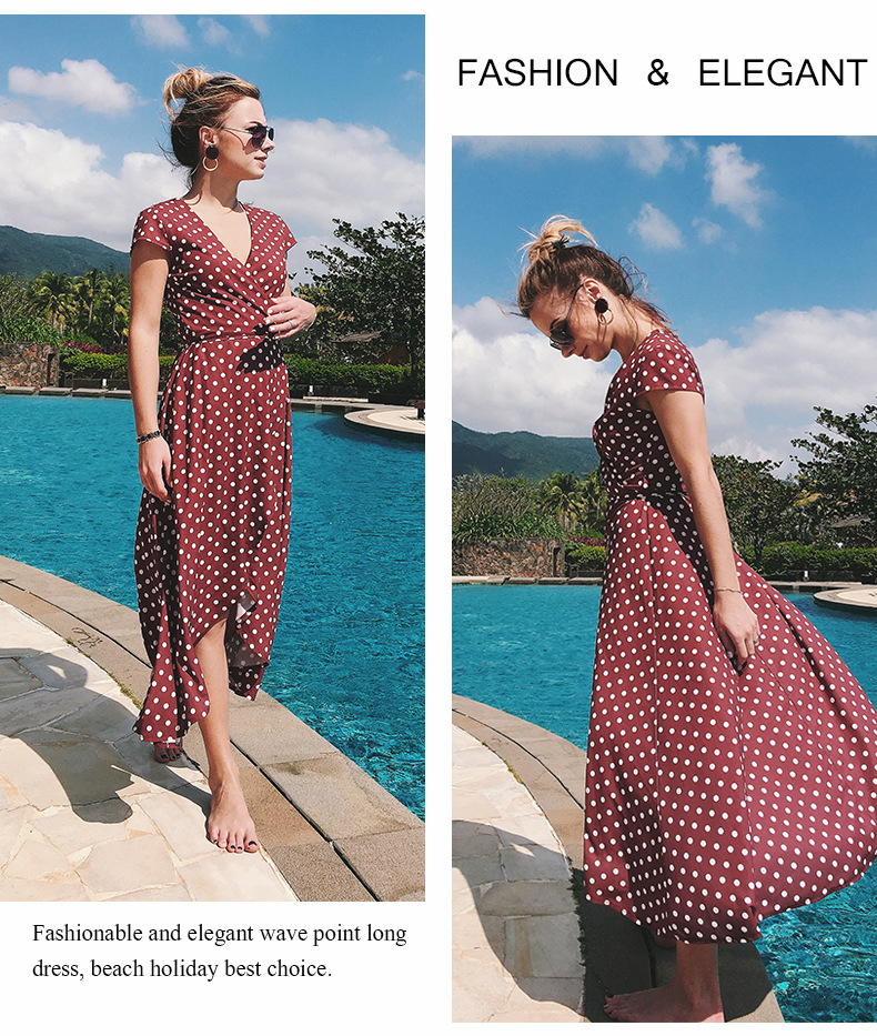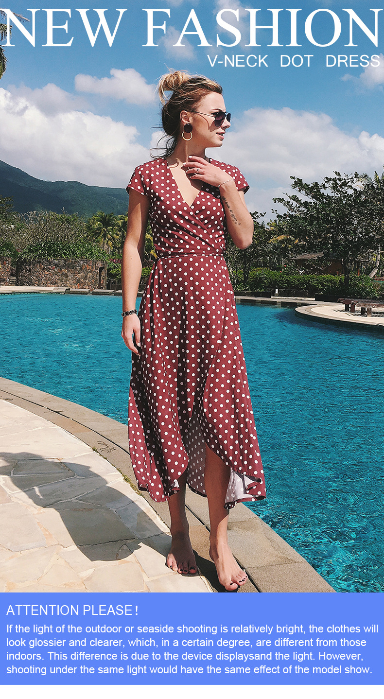 USA SIZE V-neck wave point chiffon dress leisure vacation wind wave Simia split beach dress