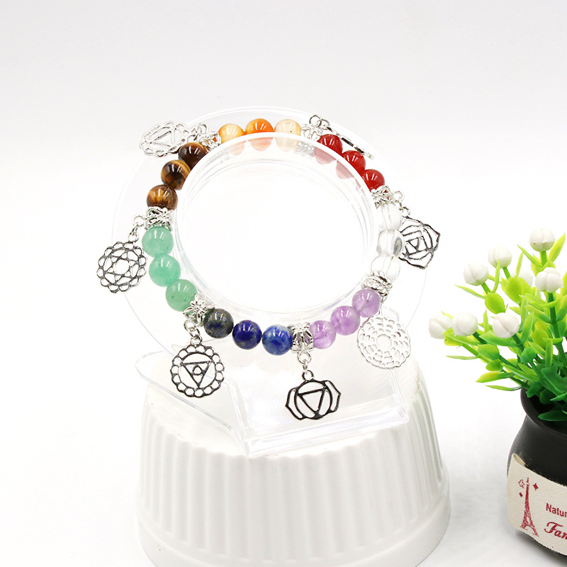Product name: Seven chakra braceletProduct size: about 8mmThe total length of the product is about 8mmProduct weight: about 25gPackaging: OPP bagsStyle: Ethnic styleMaterial: Gem
