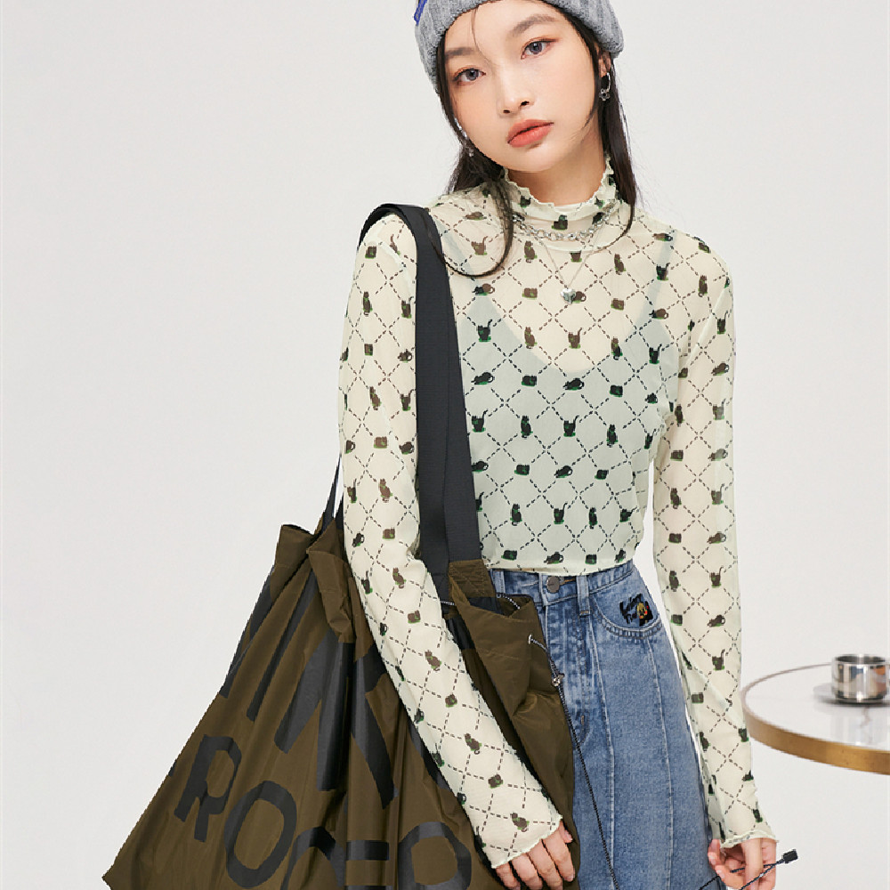 Color: Rice apricot bottom print black cat