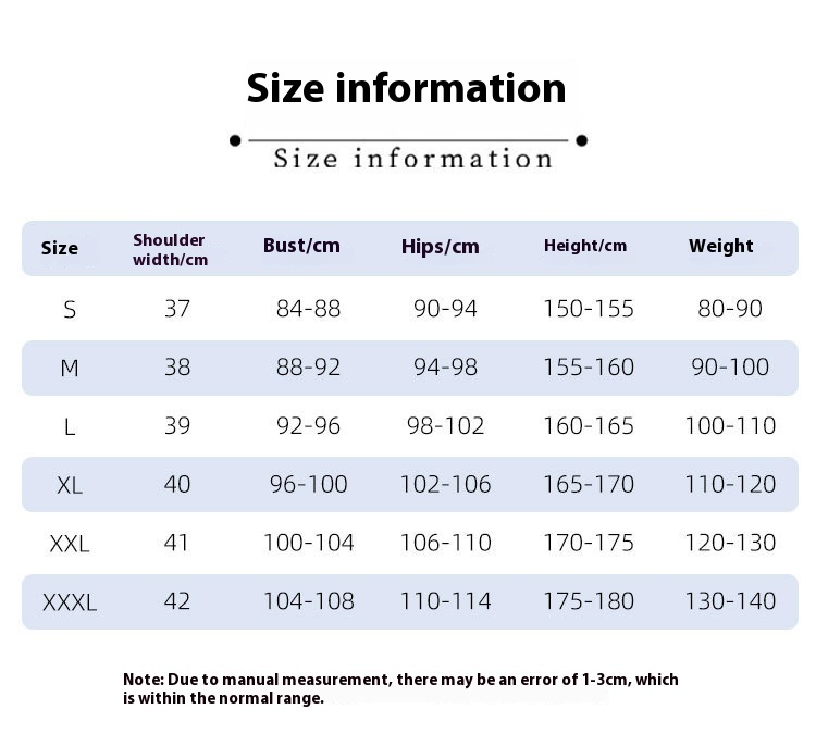 1. Asian sizes are 1 to 2 sizes smaller than European and American people. Choose the larger size if your size between two sizes. Please allow 2-3cm differences due to manual measurement. 2. Please check the size chart carefully before you buy the item, if you don't know how to choose size, please contact our customer service. 3.As you know, the different computers display colors differently, the color of the actual item may vary slightly from the following images.