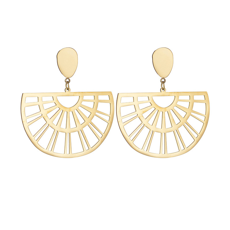 Product information:Treatment Process: Electroplating Color: JZE663 Applicable population: Female Material: Stainless steel Shape: Geometry Popular elements: fan-shaped
