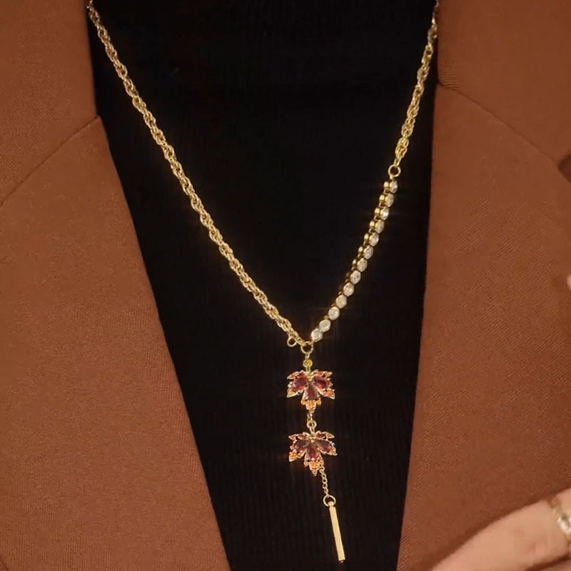 Product information:Treatment Process: inlaid zircon Color: gold maple leaf necklace Applicable population: Female Chain style: cross chain Material: Copper Shape: Leaves Popular elements: Leaves Perimeter: 41cm (inclusive)-50cm (inclusive)