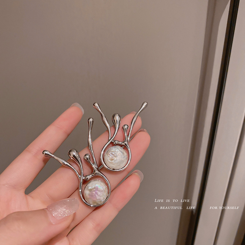 NAME: 925 silver needle geometric freshwater pearl earrings