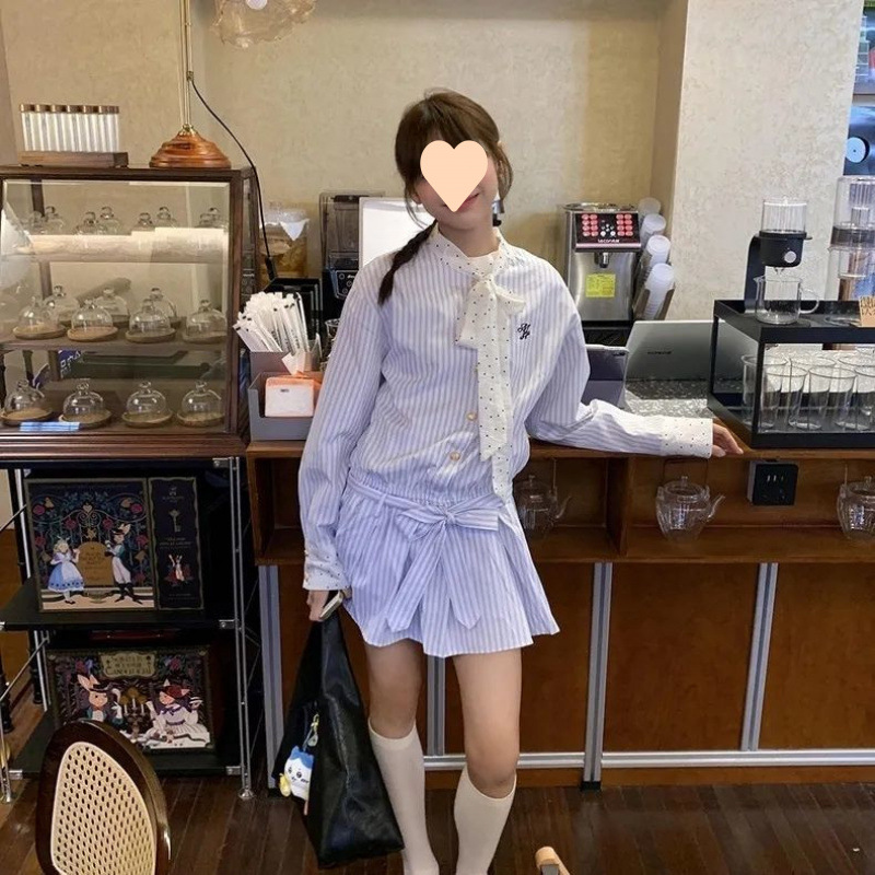Product information: Fabric name: Polyester Skirt type: A- line skirt Color: blue and white dress Size: S,M,L,XL Skirt length: short skirt Sleeve length: long sleeve